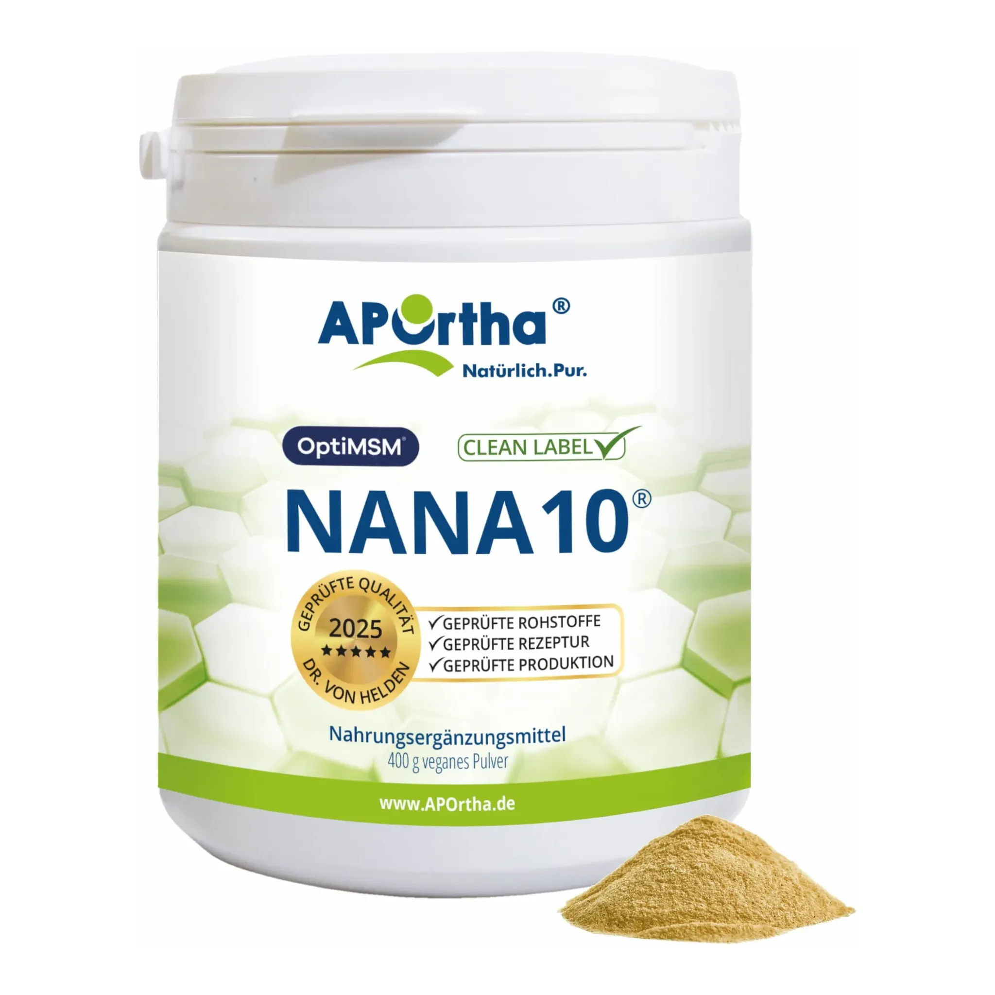 Auf Lager Versand durch AmazonAPOrtha® NaNa10 400 g veganes Pulver, Rezeptur von Dr. von Helden mit 10 Komponenten, mit Vitamin C und Magnesium sowie L-Glycin, 400g Pulver für 2 Monate, glutenfrei, allergenfrei, laktosefrei