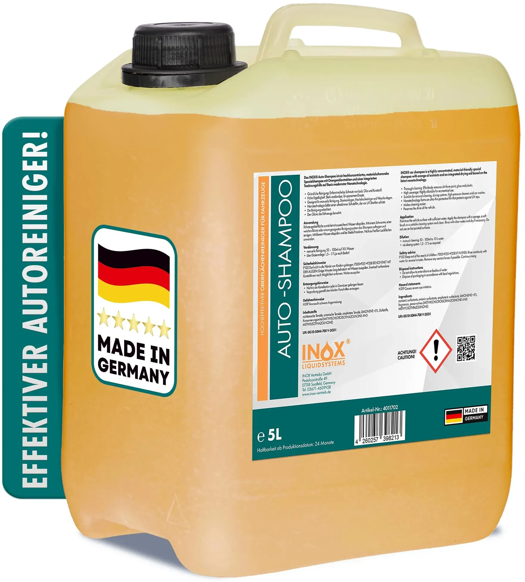 Zustand: Neu - 3,38 € / l - Reiniger Kfz-Reinigungsmittel - ProNuri Niky´-Discounter UG - PN5MB3000 - EAN: 4262506160459 - Autoshampoo Nano - Verkäufer: Nikys-Discounter im amazon.de Marketplace Dieses Autoshampoo-Konzentrat bietet eine sanfte Reinigung für verschiedene Fahrzeuge und ist preislich attraktiv. ![]() ![]() INOX-LIQUIDSYSTEMS INOX - Nano Line Autoshampoo Konzentrat im praktischen 5L Kanister | Autoreiniger für PKW, LKW, Wohnmobil und Motorrad | Autoshampoo für Hochdruckreiniger | Sanfte Reinigung