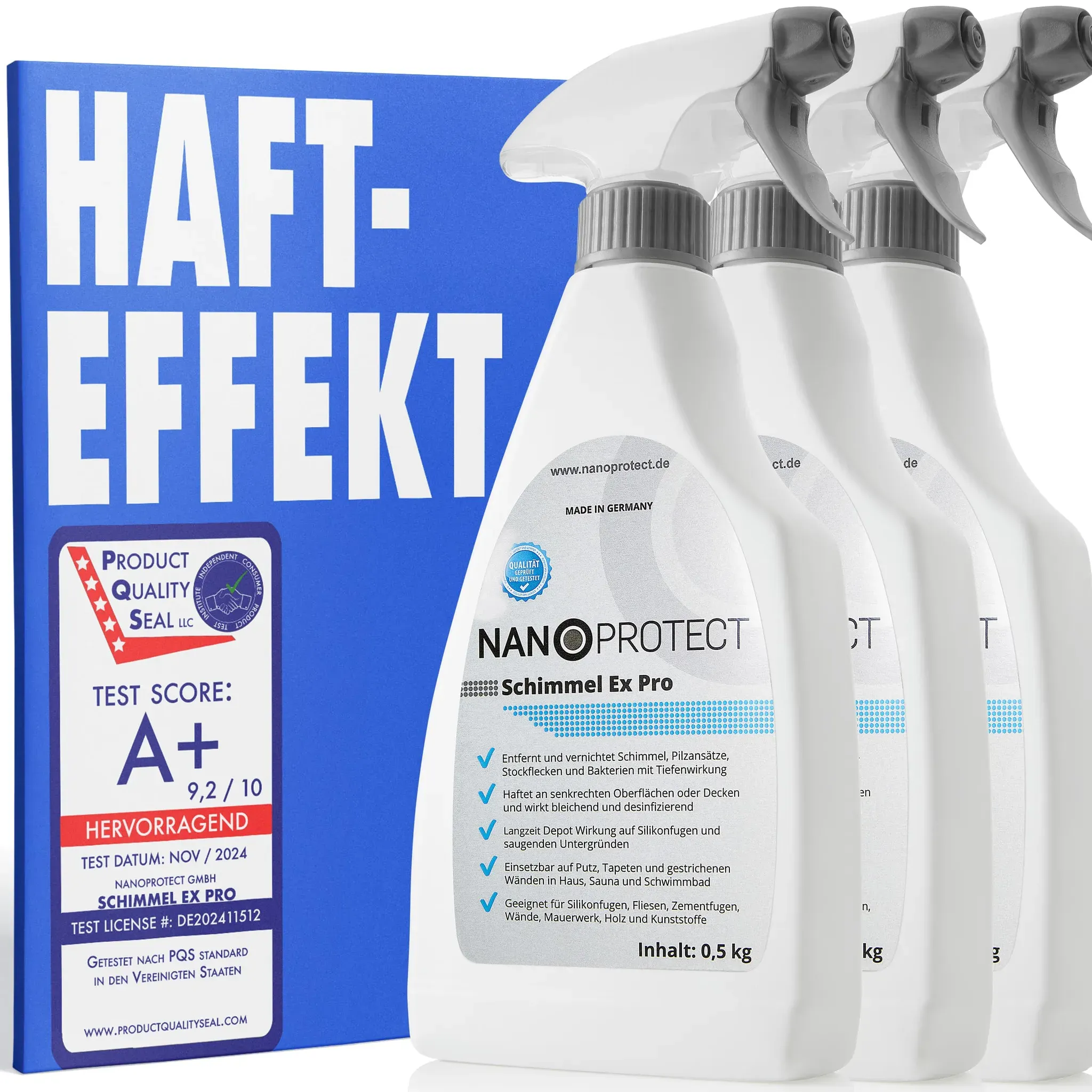 lieferbar-in 2-3 Werktagen bei dirNanoprotect Schimmel Ex Pro, Schimmelspray mit Hafteffekt Schimmelentferner (Profi Qualität) weiß