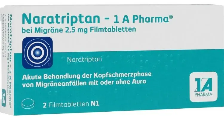 Medikamente Mode Beauty Gesundheit Apotheke - - Naratriptan Migräne Stada 2,5 mg Filmtabletten Wirkstoff: Naratriptan Anwendungsgebiete: Akute Behandlung der Kopfschmerzphase von Migräneanfällen mit und ohne Aura. Enthält Lactose. - Versandkostenfrei: false - Sale: true - Lieferzeit: sofort lieferbar - - - bei Mediherz - gefunden von shopping24 Dieses Produkt von 1A Pharma bietet eine gute Balance zwischen Preis und Qualität. ![]() NARATRIPTAN-1A Pharma bei Migräne 2,5 mg Filmtabl. 2 St