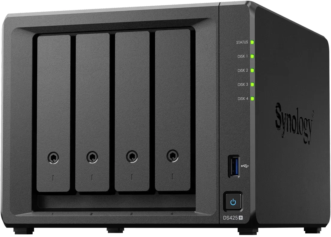 sofort ab Lager / 24h-Service möglichSynology DiskStation DS425+ NAS 4-Bay Intel Celeron J4125, 2GB DDR4 RAM, 0/4 HDD/SSD