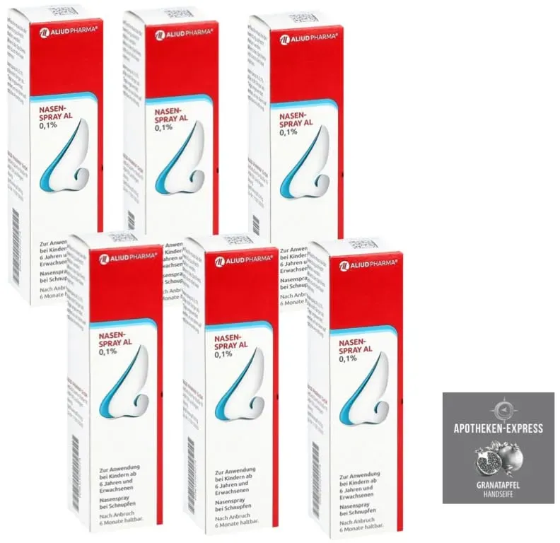 25.80 / 100 ml - Kategorie: Arzneimittel - Aliud - GTIN:4150039292740 - PZN:03929274 - NASENSPRAY AL 0,1% 10 ml - 2,58 Euro bei Preisapo - gefunden von billiger.de Ein beliebtes Einzelangebot auf Amazon, das oft schnell verfügbar ist. ![]() ![]() ALIUD PHARMA Nasenspray AL 0,1%, Lösung 10 ml: Mit abschwellender Wirkung bei verstopfter Nase wegen Schnupfen