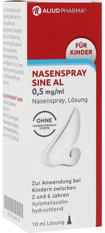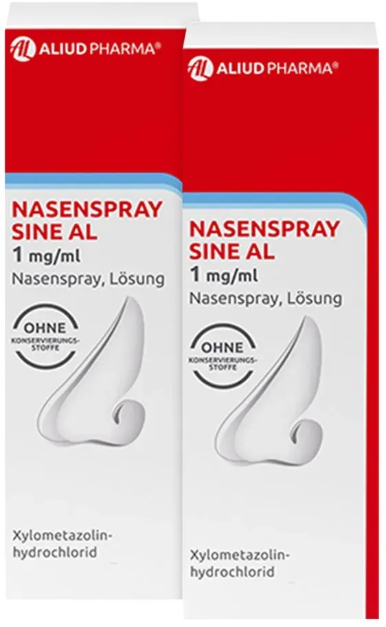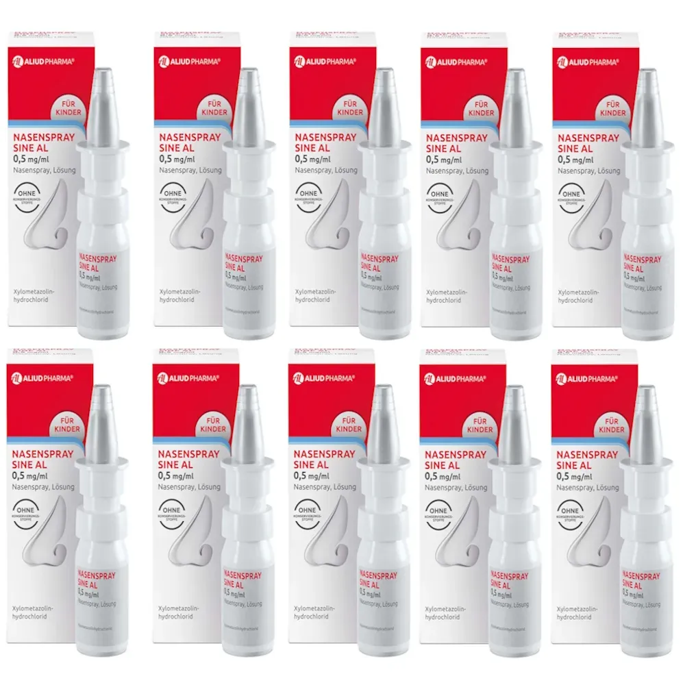 2 Händlerangebote bei billiger.de - Kategorie: Medizinischer Bedarf - Aliud - Für Erwachsene und Kinder ab nNasenspray Sine AL enthält den Wirkstoff Xylometazolinhydrochlorid. Xylometazolin hat gefäßverengende Eigenschaften und bewirkt dadurch eine Abschwellung der Nasenschleimhaut.Es dient somit zur Abschwellung der Nasenschleimhaut bei Schnupfen, anfallsweise auftretendem Fließschnupfen (Rhinitis vasomotorica) und allergischem Schnupfen (Rhinitis allergica). Zur Erleichterung des Sekretabflusses bei Entzündung der Nasennebenhöhlen sowie bei Katarrh des Tubenmittelohrs in Verbindung mit Schnupfen.Zur Anwendung bei Erwachsenen, Jugendlichen und Kindern über n. - GTIN:4150800414920 Dieses 6er Set des Nasensprays AL 0,1% ist ideal für den Vorrat und bietet einen Mengenrabatt. ![]() ![]() 6er Set NASENSPRAY AL 0,1% (6x10ml)