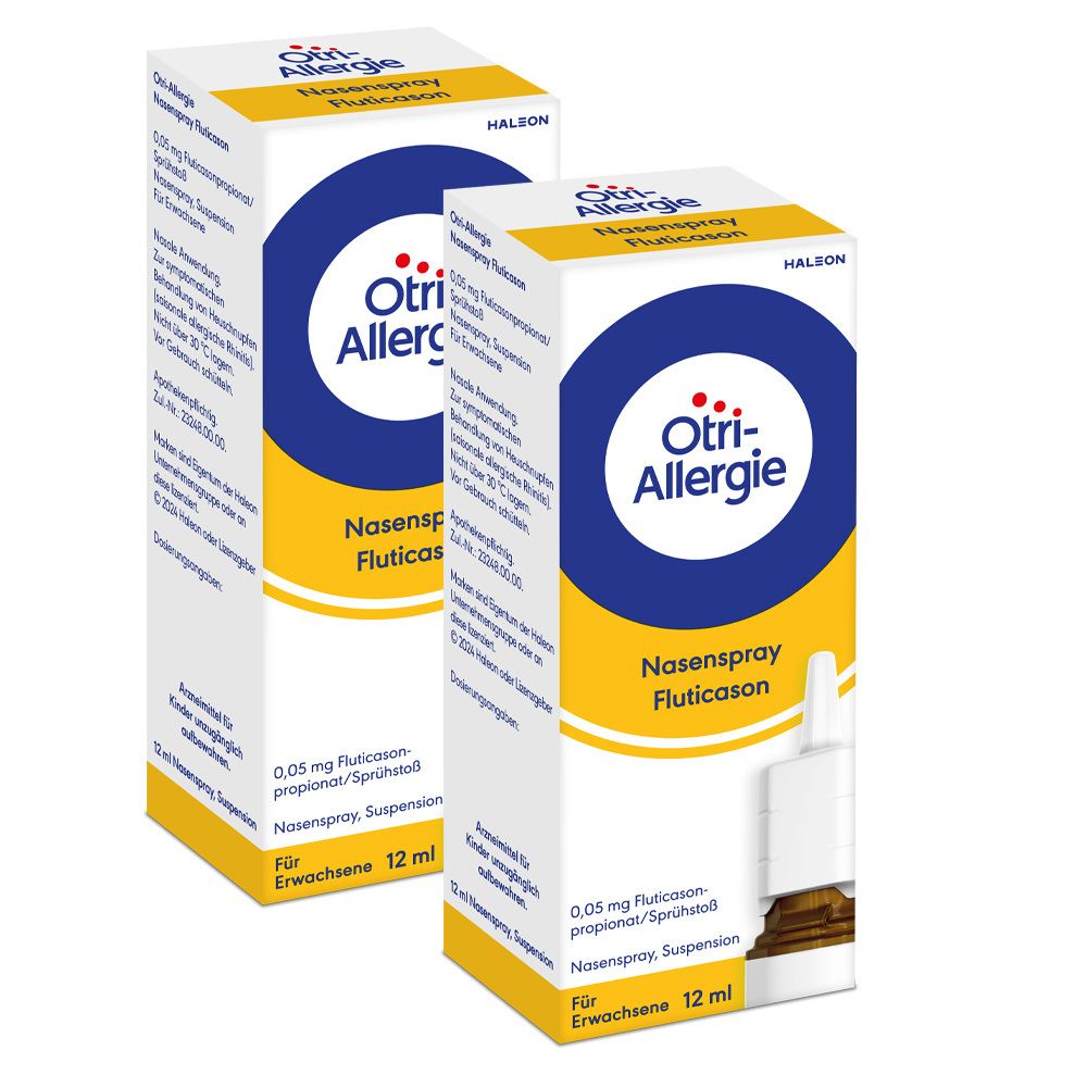 19,59 / 1ct - Der angezeigte Preis könnte seit dem letzten Update gestiegen sein - EAN: 4150081136559 - Set enthält1x nasic® Mometason Heuschnupfenspray 18g - lindert Allergie-Symptome wie Niesen, Jucken und eine verstopfte oder laufende Nase 18 g1x nasic® Salin Duo Nasenspray 15 mlnasic® Mometason Heuschnupfenspray 18g - lindert Allergie-Symptome wie... - Zustand: NEW - bei SHOP APOTHEKE - gefunden von Buycentral Das Otri Allergie NAS Fluticas Doppelpack ist eine starke Option für Allergiker, die eine langanhaltende und effektive Linderung von Heuschnupfensymptomen benötigen. ![]() Otri Allergie NAS Fluticas Doppelpack 2x12 ml Nasenspray