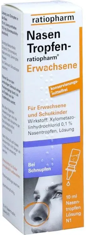 24 Händlerangebote bei billiger.de - Kategorie: Arzneimittel - Ratiopharm - Anwendungsgebiet von NasenTropfen-ratiopharm ErwachseneNasenTropfen-ratiopharm Erwachsene ist für Erwachsene und Schulkinder bestimmt, um die Nasenschleimhaut bei erkältungsbedingtem oder allergischem Schnupfen abschwellen zu lassen. Somit kann Sekret leichter abfließen und die Nase wird wieder frei.Wirkungsweise von NasenTropfen-ratiopharm ErwachseneDer in NasenTropfen-ratiopharm Erwachsene enthaltene Wirkstoff Xylometazolinhydrochlorid besitzt gefäßverengende Eigenschaften, indem er die Adern der Schleimhaut zusammenzieht. Somit wird die übermäßige Durchblutung der Nase gedrosselt, wodurch die Schleimhaut abschwillt.Wirkstoffe / Inhaltsstoffe / Zutaten10 ml NasenTropfen-ratiopharm Erwachsene enthalten: 10 mg Xylometazolinhydrochlorid Weitere Bestandteile sind: Citronensäure Natriumcitrat Glycerol Gereinigtes Wasser GegenanzeigenBei bekannter überempfindlichkeit gegenüber einem der oben genannten Inhaltsstoffe, bei trockener Entzündung der Nasenschleimhaut mit Borkenbildung, während Schwangerschaft und Stillzeit sowie bei Kindern unter n sollte dieses Produkt nicht angewendet werden. Bei Einnahme von stimmungsaufhellenden Arzneimitteln oder anderen potentiell blutdrucksteigernden Arzneimitteln, erhöhtem Augeninnendruck, schweren Herz-Kreislauferkrankungen, einem hormonproduzierenden Tumor des Nebennierenmarks sowie bei Stoffwechselstörungen ist vor der Anwendung von NasenTropfen-ratiopharm ... Dieses Produkt ist eine sehr preiswerte Option für Erwachsene, die eine schnelle Linderung bei Schnupfen suchen. ![]() Otriven gegen Schnupfen 0,1 % Nasentropfen