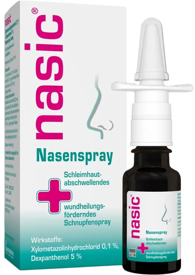 392,00 /l - Kategorie: Arzneimittel - Klosterfrau - GTIN:4008617225218 - PZN:00705309 - nasic Das abschwellende Schnupfenspray mit WirkPlusDas nasic Nasenspray lässt Schnupfnasen dank zwei kombinierter Wirkstoffe erfolgreich abschwellen: Xylometazolin und Dexpanthenol. Xylometazolin verengt die Gefäße der Schleimhaut und kann so für eine Abschwellung sorgen. Das Abschwellen der Nasenschleimhäute bei Schnupfen steigert unmittelbar das Wohlbefinden und hat noch einen weiteren entscheidenden Vorteil: Das Risiko einer Nasennebenhöhlenentzündung verringert sich, wenn die Nasennebenhöhlen gut belüftet sind. Die Nasensekrete können wieder besser abfließen, der Schleim setzt sich nicht mehr so leicht fest. Gerade der festsitzende Schleim bietet Krankheitserregern hervorragende Bedingungen, um sich einzunisten, zu vermehren und auszubreiten, auch in den Nasennebenhöhlen. Das Xylometazolin in nasic Nasenspray ist ein bewährter Wirkstoff, der die Abschwellung innerhalb kurzer Zeit nach der Anwendung des Sprays herbeiführt.Daneben pflegt und unterstützt Dexpanthenol zusätzlich die Heilung der Nasenschleimhaut, die durch Schnäuzen und Austrocknung in Mitleidenschaft gezogen wird. In nasic Nasenspray ergänzen sich die Wirkstoffe und sind zusammen stärker als allein so können Sie Ihren Schnupfen schneller loswerden.Anwendung:Erwachsene und Schulkinder sprühen je nach Bedarf 3-mal täglich einen Sprühstoß in jedes Nasenloch. Dabei den Sprühkopf möglichst senkrecht einführen und je einmal ... Dieses Angebot ist das günstigste für das klassische Nasic Nasenspray und somit eine gute Standardoption. ![]() ![]() Klosterfrau nasic Nasenspray 10 ml
