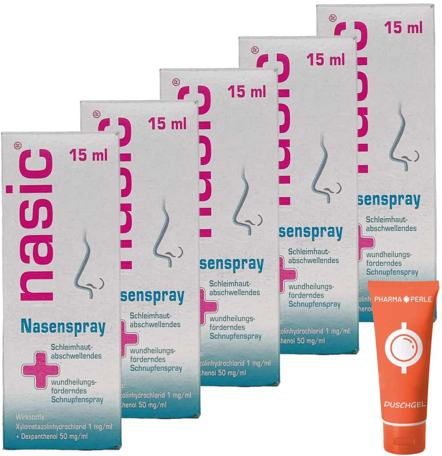 Zustand: Neu - 416,50 € / l - Erkältung & Grippe Medikamente bei Erkältung - nasic MCM Klosterfrau Vertr. GmbH - PZN: 10065578 - EAN: 4262465281103 - Den Schnupfen schneller loswerden: Nasic Schnupfenspray mit dem Wirkplus befreit schnell die Nase und unterstützt zusätzlich die Heilung der durch den Schnupfen geschädigten Nasenschleimhäute. Die Nasic Wirkstoffe Xylometazolin und Dexpanthenol ergeben zusammen das Wirksplus - sie ergänzen sich & fördern so den Heilungsverlauf. Das Wirkstoff-Paar für eine befreite Nase: Xylometazolin besitzt gefäßverengende Eigenschaften & wirkt abschwellend, während Dexpanthenol zur Wundheilungsförderung der Schleimhäute beiträgt . Anwendung: Erwachsene & Schulkinder sprühen je nach Bedarf 3-mal täglich einen Sprühstoß in jedes Nasenloch - den Sprühkopf möglichst senkrecht einführen & je einmal pumpen. Zu Risiken und Nebenwirkungen lesen Sie die Packungsbeilage und fragen Sie Ihre Ärztin, Ihren Arzt oder in Ihrer Apotheke. - 4 Händler im amazon.de Marketplace Dieses große Sparset mit 5 x 15 ml ist die beste Wahl für langfristige Nutzung und bietet den günstigsten Preis pro Einheit. ![]() ![]() Klosterfrau NASIC Nasenspray 5 x 15ml Sparset I bei Schnupfen I abschwellendes Nasenspray I mit Xylometazolin und Dexpanthenol I für Erwachsene und Jugendliche I mit give-away von Pharma Perle