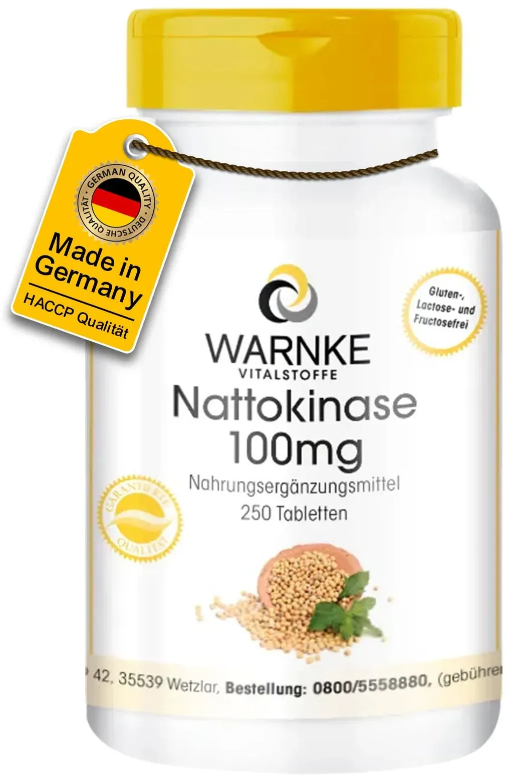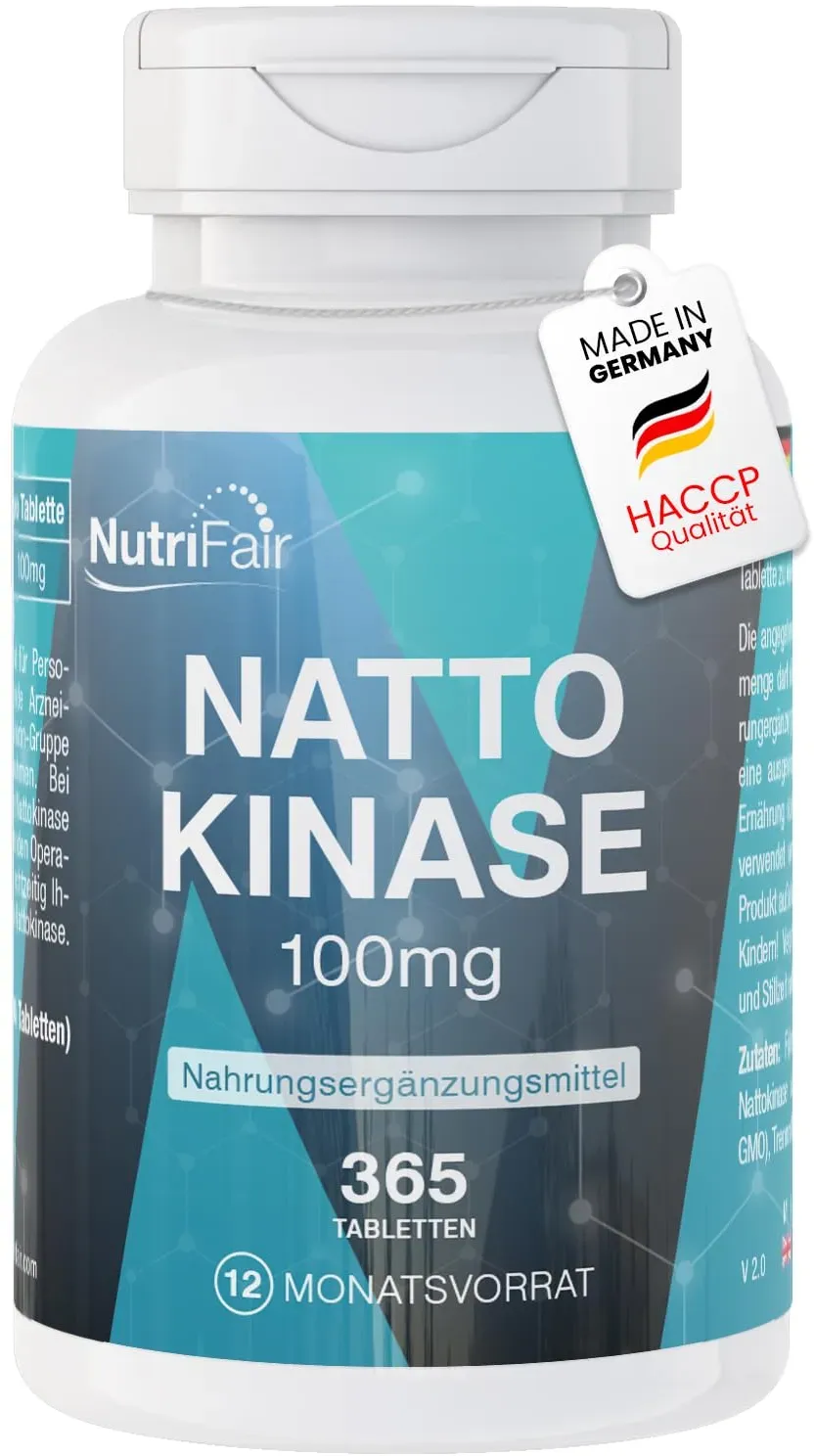 Kategorie: Nahrungsergänzungsmittel - nutrifair - GTIN:8720634240338 - EINE GEBALLTE PORTION ENZYME: Nattokinase ist ein natürliches Enzym, das durch die Fermentation von Sojabohnen mit dem Bakterium Bacillus subtilis natto entsteht traditionell aus dem japanischen Gericht Natto gewonnen. DEIN JAHRESVORRAT: Jede Tablette enthält 100mg (2000 FU*) Nattokinase. 365 Tabletten hochdosierter Sparvorrat sichern deine Versorgung für ein ganzes Jahr! OHNE UNERWüNSCHTE ZUSATZSTOFFE: Frei von Gluten, Lactose, Fructose, Magnesiumstearat, Siliciumdioxid, Konservierungsstoffe, Soja, Hefe, Pestizide, Fungizide, Kunstdünger, Farbstoffe, Stabilisatoren und Gentechnik (NON-GMO). PRAKTISCHER DOSIERDECKEL: Der innovative Verschluss erlaubt die Entnahme mit einem Handgriff. Lange Haltbarkeit in luftdicht versiegelter Dose mit praktischem Dosierdeckel samt Frischesiegel. Ideal für unterwegs! HERGESTELLT IN DEUTSCHLAND: Unsere Produkte werden nach höchsten deutschen Qualitäts-Standards in Deutschland gemäß HACCP hergestellt und von unabhängigen deutschen Laboren geprüft und zertifiziert. Herkunft der Rohstoffe aus EU und Nicht-EU-Länder. Als Familienunternehmen stehen wir für Integrität, Transparenz und höchste Produktqualität. - 21,95 Euro bei Amazon Marketplace Health & Personal Care - gefunden von billiger.de Dieses Produkt bietet eine große Menge an Tabletten und ist hochdosiert sowie vegan. ![]() ![]() Nattokinase 100mg - 250 Tabletten - 2000 FU - hochdosiert - vegan | Warnke Vitalstoffe - Deutsche Apothekenqualität