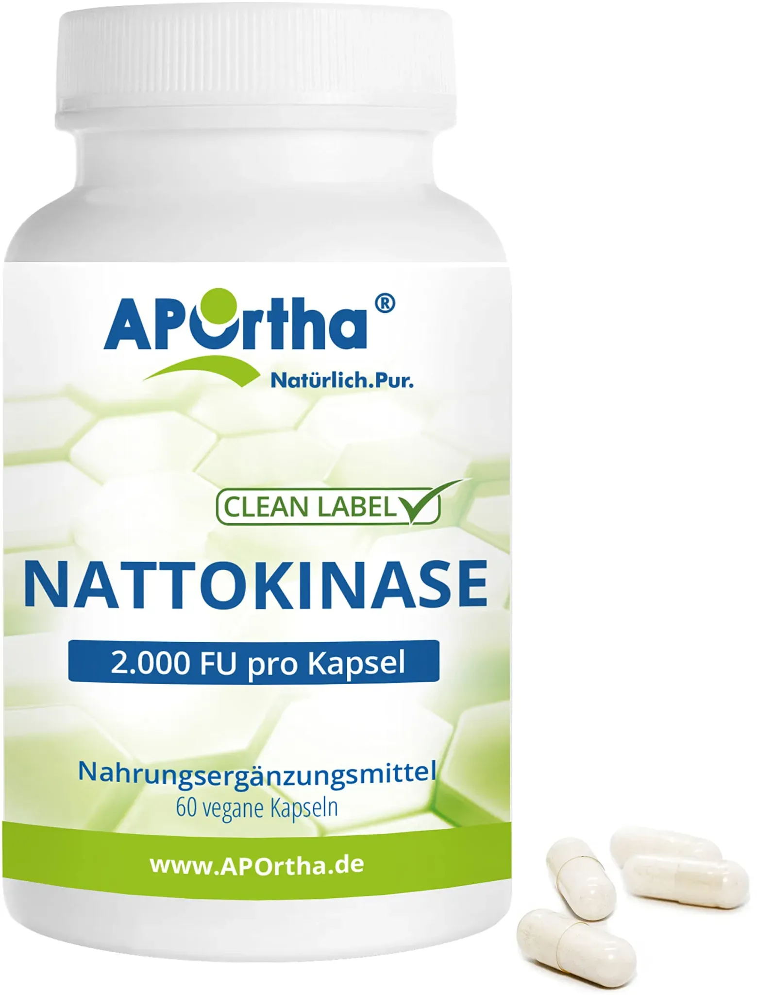 Kategorie: Nahrungsergänzungsmittel - Vitamintrend - GTIN:8718754560733 - HOCHREINE NATTOKINASE: Unser Produkt enthält fermentierten Sojabohnenextrakt (Nattokinase) mit 100 mg pro Tablette (2000 FU fibrinolytische Aktivität) sorgfältig gewonnen und in geprüfter Qualität. EINFACH DOSIEREN, LANGE VERSORGT: Mit nur 1 Tablette täglich bist Du für 4 Monate versorgt. Der praktische Klappdeckel spart Zeit kein lästiges Schrauben mehr nötig. OHNE ZUSäTZE: Frei von Magnesiumstearat, Farbstoffen, Aromen, Konservierungsstoffen und Siliciumdioxid. Du bekommst nur das, was Dein Körper wirklich braucht. ZUVERLäSSIG GETESTET: Unsere Produkte werden nach HACCP-Standards hergestellt. Jede Charge wird gründlich geprüft auf Reinheit sowie auf mögliche Rückstände. So bekommst Du genau das, was draufsteht. FAMILIENUNTERNEHMEN MIT ERFAHRUNG: Unsere Nahrungsergänzung wird in Deutschland hergestellt und stammt aus einem erfahrenen Familienbetrieb. Wir stehen für ehrliche Qualität zu einem fairen Preis. - 12,95 Euro bei Amazon Marketplace Health & Personal Care - gefunden von billiger.de Dieses Produkt ist eine gute Wahl für Veganer und bietet eine solide Menge an Kapseln. ![]() ![]() APOrtha Nattokinase 100 mg, 60 vegane Kapseln mit je 100 mg (20.000 FU/g), durch natürliche Fermentation gewonnen, hochdosiert, laktosefrei, glutenfrei, GMO-frei, vegan ohne Zusatzstoffe