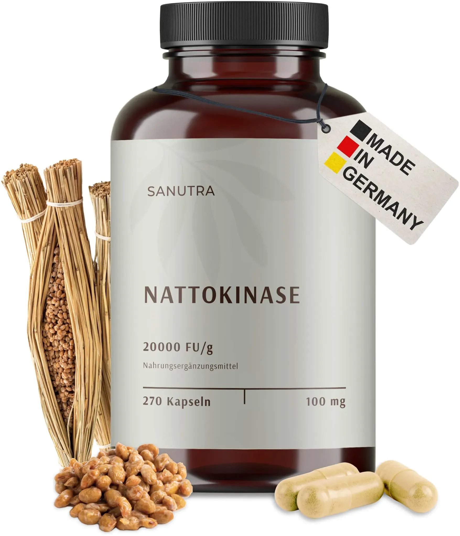 Kategorie: Nahrungsergänzungsmittel - luto supplements - GTIN:8721055250845 - HOCHDOSIERT FüR OPTIMALE WIRKUNG: Jede Kapsel enthält eine starke Dosis von 100 mg reiner Nattokinase, die 2000 Fibrinolyse-Einheiten (FU) pro Kapsel entspricht. 12 MONATE LAGER: Jede Packung enthält 365 hochdosierte Nattokinase-Kapseln, perfekt für einen Jahresbestand im täglichen Gebrauch. Jede Kapsel enthält 100 mg reine Nattokinase, die 2000 Fibrinolyse-Einheiten (FU) pro Kapsel oder 20.000 FE pro Gramm entspricht. VEGAN UND REINER - Unsere Nattokinase Kapseln sind 100% vegan und völlig frei von unerwünschten Zusatzstoffen. Kein Magnesiumstearat, künstliche Aromen, Farbstoffe, Stabilisatoren oder Gelatine. Darüber hinaus sind sie gentechnikfrei, laktosefrei, glutenfrei und ohne Konservierungsstoffe. RTE QUALITäT UND REINHEIT: Hergestellt nach strengen Qualitätsstandards werden unsere Nattokinase-Kapseln sorgfältig auf Reinheit und Potenz getestet. Sie können sich auf ein konsistentes, hochwertiges Produkt verlassen, ohne Kompromisse bei Sicherheit oder Wirksamkeit einzugehen. - 17,90 Euro bei Amazon Marketplace Health & Personal Care - gefunden von billiger.de Dieses Produkt ist eine gute Option für Veganer und bietet eine hohe Dosierung ohne Vitamin K1 & K2. ![]() ![]() SANUTRA Nattokinase Kapseln hochdosiert 20.000 FU/g, 2.000 FU Tagesdosis, Vitamin K1 & K2 bereinigt, sojafrei, vegan, ohne Zusätze, rückstandskontrolliert, deutsche Herstellung, 270 Stück x 100 mg