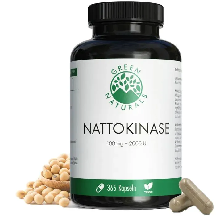 Kategorie: Nahrungsergänzungsmittel - Warnke Vitalstoffe - GTIN:4251773400061 - Hervorragendes Preis-Leistungsverhältnis für deutsche Qualität - Warnke Vitalstoffe - Nattokinase 100mg - hochdosiert - 250 vegane Tabletten Zutaten: Füllstoff mikrokristalline Cellulose, Nattokinase (aus fermentiertem Soja, non-GMO), Calciumsalze der Orthophosphorsäure Erwachsene täglich 1 Tablette zu einer Mahlzeit mit viel Wasser. ------ Nettofüllmenge: 110g/250 Tabletten Inhalt: 250 Tabletten Nattokinase 100mg für 250 Tage. Ergiebige Packung ohne Magnesiumstearat! Hochdosiert Qualität und Verbraucherfreundlichkeit: Unsere Produkte entsprechen den HACCP Qualitätsstandards. Hergestellt in Deutschland. Rohstoffe aus EU- und Nicht EU-Ländern. Die optimierte Verpackung mit einem versiegelten Dosierdeckel sorgt für die lange Haltbarkeit Ihrer Nahrungsergänzungsmittel und für ihre einfache Dosierung - 25,95 Euro bei Amazon Marketplace Health & Personal Care - gefunden von billiger.de Dieses Produkt bietet eine große Menge an veganen Kapseln für einen längeren Zeitraum. ![]() ![]() Heilpflanzenwohl GREEN NATURALS Nattokinase 100 mg vegan Kapseln 365 St.