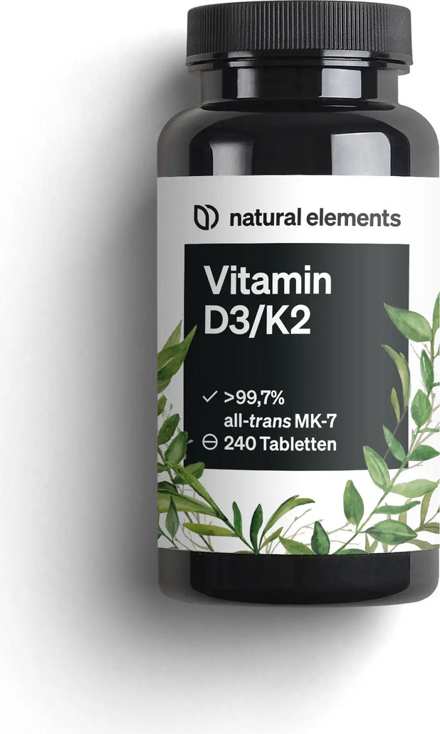 KundenzufriedenheitNutzer berichten von positiven Erfahrungen[2]: Sie fühlen sich fitter, haben mehr Energie und vertragen das Produkt ohne Nebenwirkungen. Die hochwertige Qualität und deutsche Produktion werden besonders geschätzt. Fazit: Die natural elements Vitamin D3/K2 Tropfen sind eine ausgezeichnete Wahl für alle, die ihre Knochen- und Immungesundheit unterstützen möchten - besonders in den Wintermonaten mit geringer Sonnenlichtexposition. Jetzt live Suche nach natural elements vitamin d3 k2 starten! Empfohlene Natural elements vitamin d3 k2 Angebote*Durch Kufe ber Links zu Hndlern kann diese Website eine Provision erhalten, u.a. durch das eBay Partner Network und das AmazonPartnerNetHier ist eine Auswahl von 15 repräsentativen und empfehlenswerten Angeboten für Natural Elements Vitamin D3 K2, die verschiedene Preisbereiche und Darreichungsformen abdecken: Dieses Produkt bietet eine hohe Dosierung von 5000 IE D3 und verwendet den hochwertigen K2VITAL Rohstoff für optimale Bioverfügbarkeit. ![]() ![]() Natural Elements Vitamin D3/K2 K2Vital® 99,7+% All-Trans K2-Mk7 + 5000 IE Tabletten