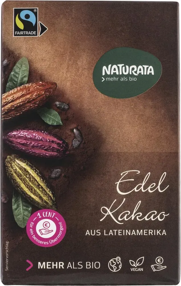 Kategorie: Kakao - Naturata - GTIN:4024297007593 - Verpackungsmenge: 1500 Gramm Bio-Zertifizierung: EG-Bio Der Edelkakao von Naturata besitzt im Vergleich zu stark entöltem Kakao (11 % Kakaobutter) einen höheren Kakaobutteranteil (21 % Kakaobutter) und zeichnet sich deshalb durch einen kräftigen, typischen Kakaogeschmack aus. - 50,48 Euro bei Amazon Marketplace Lawn & Garden - gefunden von billiger.de ![]() ![]() Edelkakao aus Lateinamerika 12 x 125 gr
