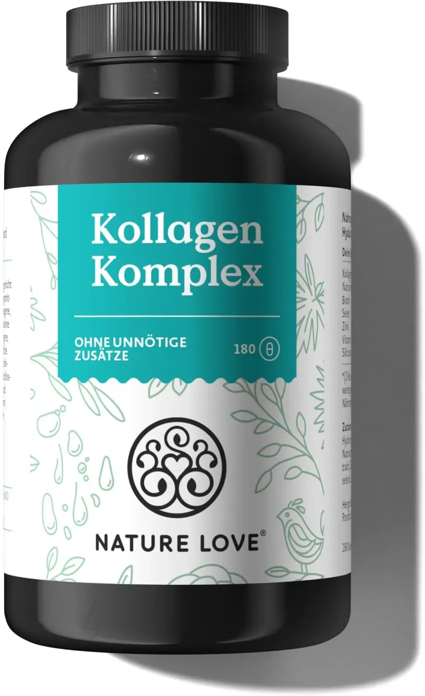 Auf Lager Versand durch AmazonNATURE LOVE® Kollagen Komplex ? 180 Kapseln ? mit Hyaluron, Biotin, Selen, Zink, Vitamin C aus Acerola & Silicium aus Bambusextrakt ? Collagen hochdosiert ? laborgeprüft und in Deutschland produziert