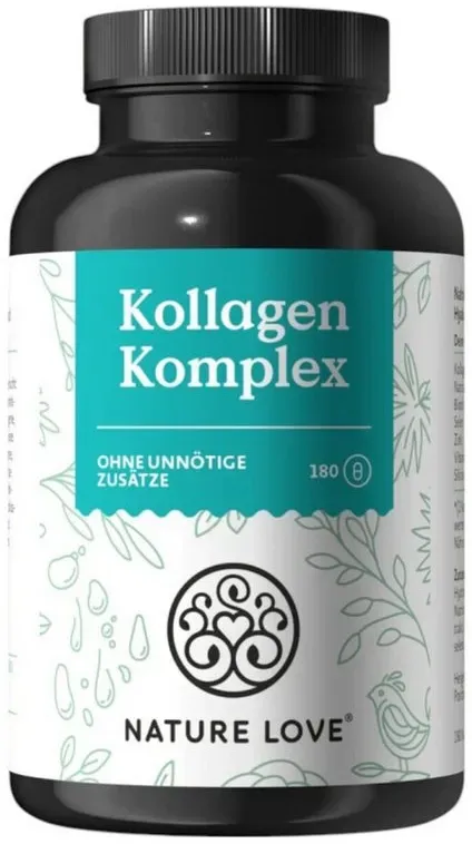 Kategorie: Nahrungsergänzungsmittel - Nature Love - GTIN:4260488132266 - DEPOT: Dein Körper synthetisiert das Eiweiß Kollagen selber. Doch mit dem älterwerden nimmt die Produktion ab. Wie schön, dass du dein Depot mit unseren Kapseln von innen auffüllen kannst. ECHT SCHöN KOMBINIERT: Collagen, Hyaluron, Biotin, Selen, Silicium, Vitamin C und Zink. Zink unterstützt geziehlt deine Haut, Haare und Nägel.* Außerdem setzen wir auf hochwertiges Kollagen Hydrolysat vom Typ 1 und Typ 3, top! Für 3 Monate. GESCHMACKSSACHE: Kollagen trifft nicht unbedingt jeden Geschmack. Was du hier riechst und schmeckst, ist ganz natürlich. Wem unsere Kapseln nicht schmecken, öffnet sie einfach und gibt das Pulver in den daily Smoothie oder Kaffee mega! GANZHEITLICHER EFFEKT: *Biotin & Zink tragen zur Erhaltung normaler Haut und Haare bei. Selen & Zink tragen zur Erhaltung normaler Nägel bei. Vitamin C trägt zu einer normalen Kollagenbildung für eine normale Funktion der Haut bei. NATURE LOVE QUALITäT: Nichts liegt uns mehr am Herzen als dein Wohlbefinden. Deshalb prüfen wir jede einzelne Charge und legen die Prüfberichte für dich offen. Die Untersuchungsbescheinigung findest du übrigens unter 'Sicherheitsdokumente'. Gut? Finden wir auch. WITH LOOOVE: Schon mal darüber nachgedacht, dass dein Körper, dein ganzes Wesen natürlich ist? Und hey, es gibt doch nichts Schöneres, als genau das an sich selbst zu lieben, oder? Daher achten wir auf möglichst naturnahe Inhaltsstoffe und Rezepturen. - 29,99 ... ![]() ![]() Nature Love Kollagen Komplex Kapseln 180 St.