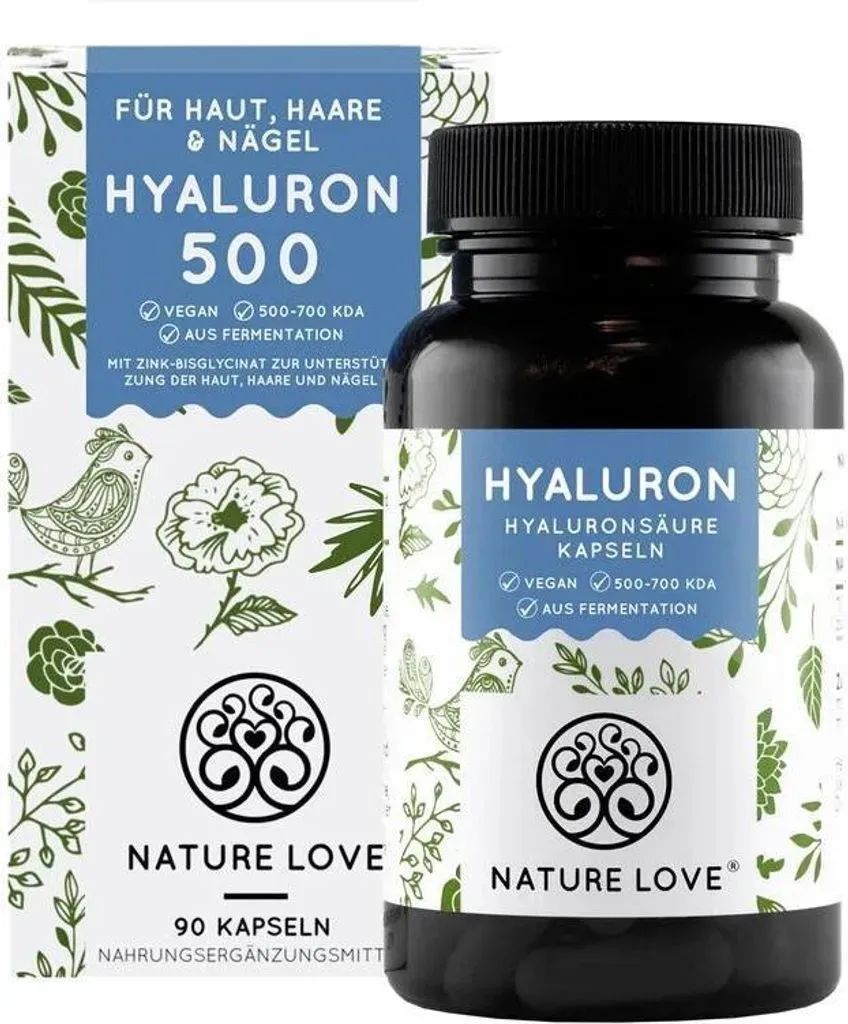Auf Lager Versand durch AmazonNATURE LOVE® Hyaluron Kapseln mit Zink - Hochdosiert mit 500mg - für Haut, Haare & Nägel - 90 Hyaluronsäure Kapseln - Vegan, Laborgeprüft, ohne unerwünschte Zusätze & in Deutschland produziert
