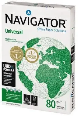 Kategorie: Papier - Navigator - GTIN:5602024006102 - Geliefert wird: Navigator Kopierpapier Universal 8247A80S DIN A4 80g 500 Bl./Pack., Verpackungseinheit: 1 Stück, EAN: 5602024006102. - 8,00 Euro bei elektro4000.de - gefunden von billiger.de Ein Einzelpaket im höheren Preissegment, das bei büroplus.de erhältlich ist. ![]() ![]() NAVIGATOR Kopierpapier Universal DIN A4 80 g/qm 500 Blatt
