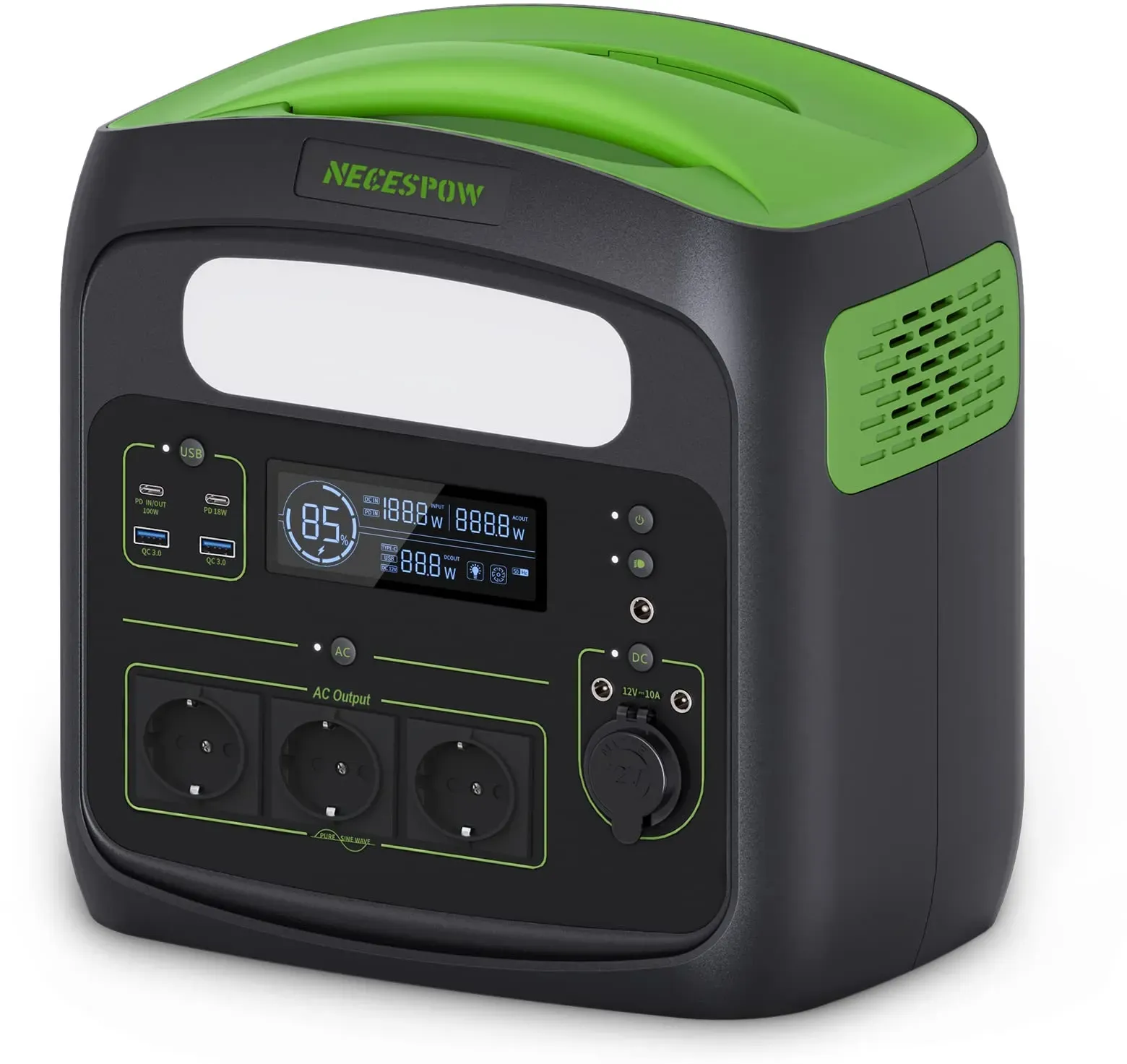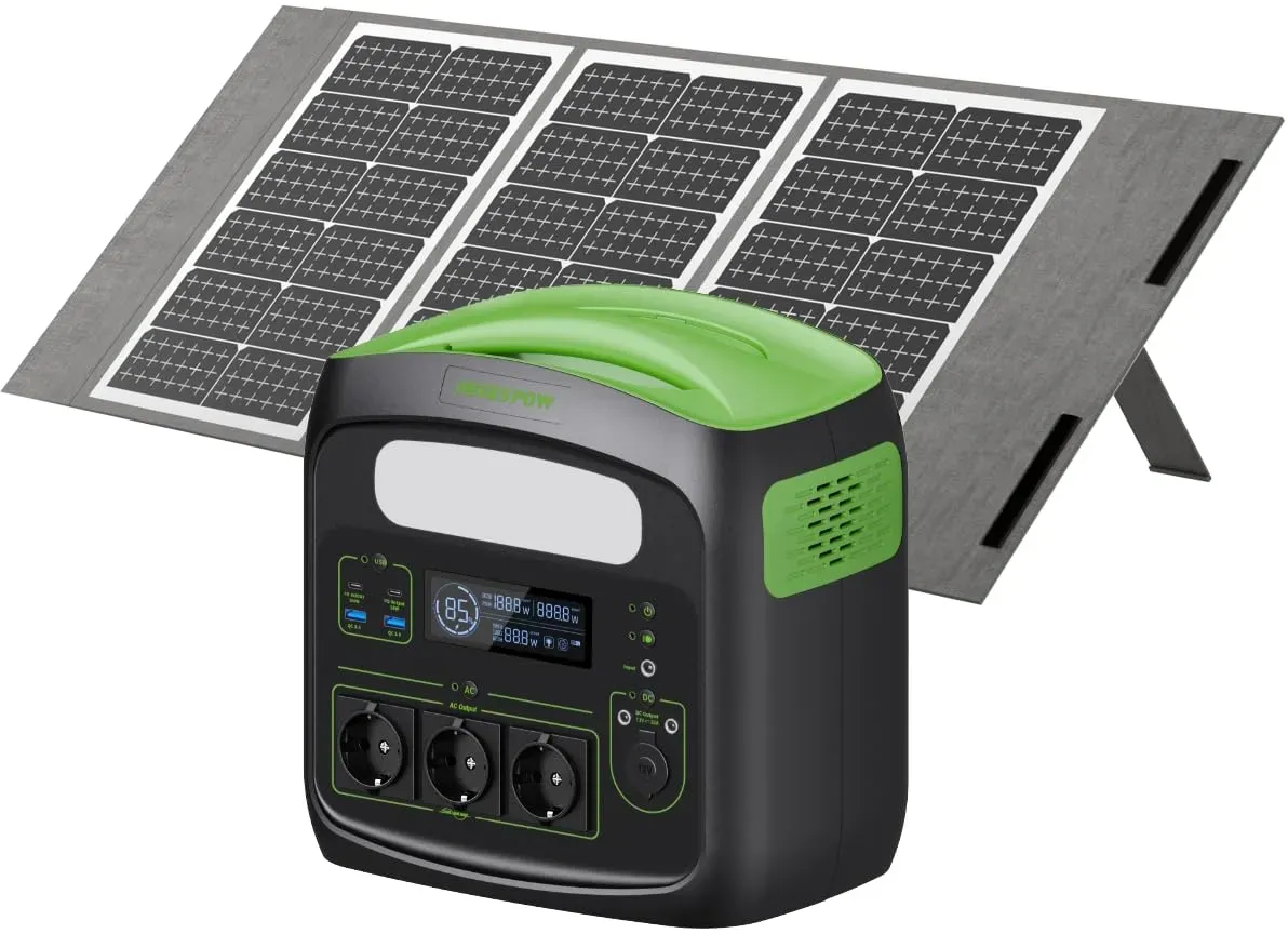 Kategorie: Stromspeicher - NECESPOW - GTIN:0741365401445 - 1500W Dauerleistung & 3000W Spitzenleistung : Mit einer stabilen Ausgangsleistung von 1500W und einer Spitzenleistung von 3000W ist diese Powerstation ideal für Haushaltsgeräte, Elektrowerkzeuge oder Campingausrüstung. 1102,5Wh Kapazität für Langzeitnutzung : Mit 1102,5Wh Kapazität liefert die Powerstation stundenlange Energie ideal für Outdoor-Abenteuer, Stromausfälle oder Arbeiten im Freien. Sie können Smartphones über 80-mal laden, einen Laptop 15 Stunden oder eine Kühlbox über 15 Stunden betreiben zuverlässig und mobil. LiFeMnPO4-Akku mit über 3000 Ladezyklen : Der integrierte LiFeMnPO4-Akku, sondern auch eine deutlich längere Lebensdauer mit über 3000 Ladezyklen. Im Vergleich zu herkömmlichen Lithium-Ionen-Akkus ist dieser Akku temperaturbeständiger, stabiler und ideal für regelmäßige oder Notfallnutzung geeignet. Schnellladung in nur 1,3 Stunden : Dank der 1000W AC-Eingangsleistung ist die Powerstation in nur 1,3 Stunden vollständig aufgeladen. 0 80 % in nur 50 Minuten! Kein schwerer Adapter nötig einfach anschließen und laden. Ideal für spontane Ausflüge oder Strombedarf zwischendurch. Vielseitige Anschlüsse für alle Geräte : Ausgestattet mit 3x 230V AC-Steckdosen, 2x USB QC3.0, 2x USB-C (bis zu 100W), 2x DC 12V/10A und einem 12V Kfz-Ausgang diese Powerstation deckt alle Bedürfnisse ab. Laden Sie mehrere Geräte gleichzeitig: vom Smartphone über Drohnen bis hin zum Fernseher oder der Kühlbox im Campingurlaub. ... Diese Powerstation zeichnet sich durch ihre schnelle Ladezeit und hohe Leistung aus, was sie ideal für anspruchsvollere Outdoor-Aktivitäten macht. ![]() ![]() Tragbare Powerstation 1500W (Power Lifting 3000W), 1102,5Wh, LiMnFePO4 Akku, 0-100% in 85 Min aufgeladen, USB-C-100W, DC-Ausgang, 230V AC Steckdosen, MPPT 400W Solarladung, für Camping, Outdoor