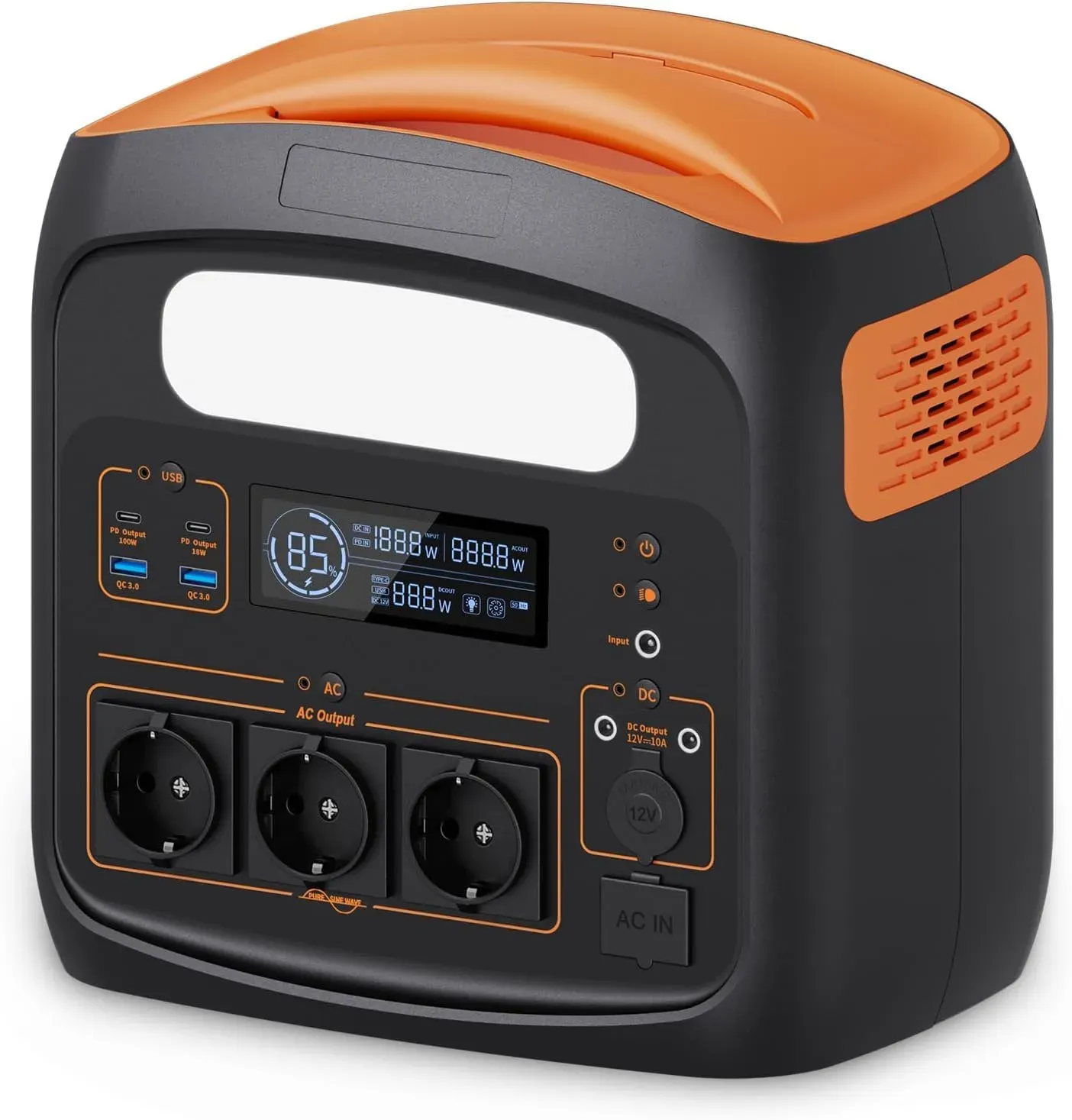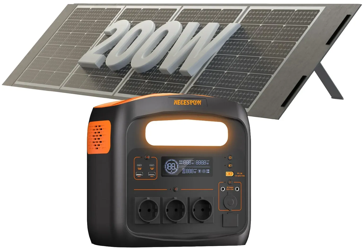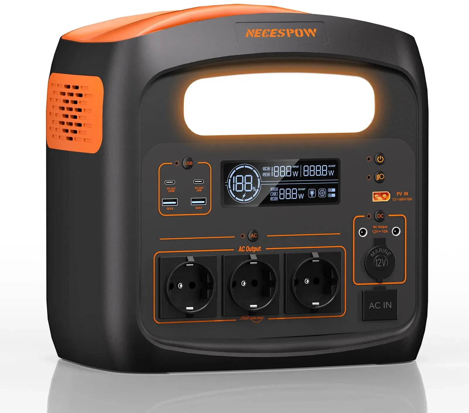 lieferbar-in 3-4 Werktagen bei dirNECESPOW N1200 1200W 1100.25Wh LiFePO4 Batterie Powerstation 294000 mAh, AC Steckdosen x 3 1200W (2400W Spitze) orange