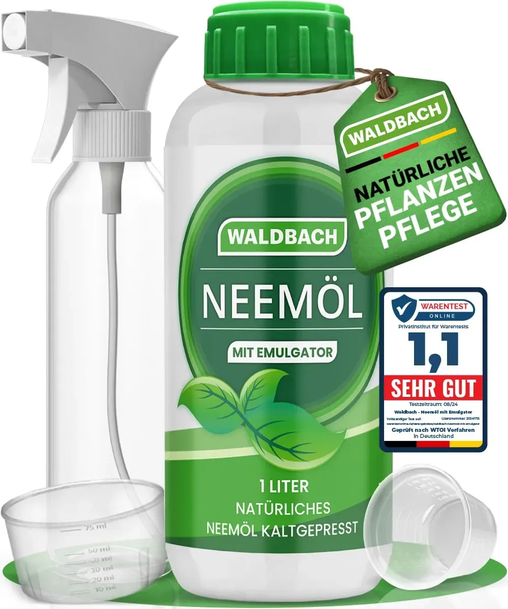 ![]() ![]() WALDBACH® Neemöl mit Emulgator [1000ml] - Natürliches Neemöl für Pflanzen mit Sprühflasche und Messbecher - 100 Liter sprühfertige Mischung - Effektive Pflanzenpflege für Garten- & Zimmerpflanzen