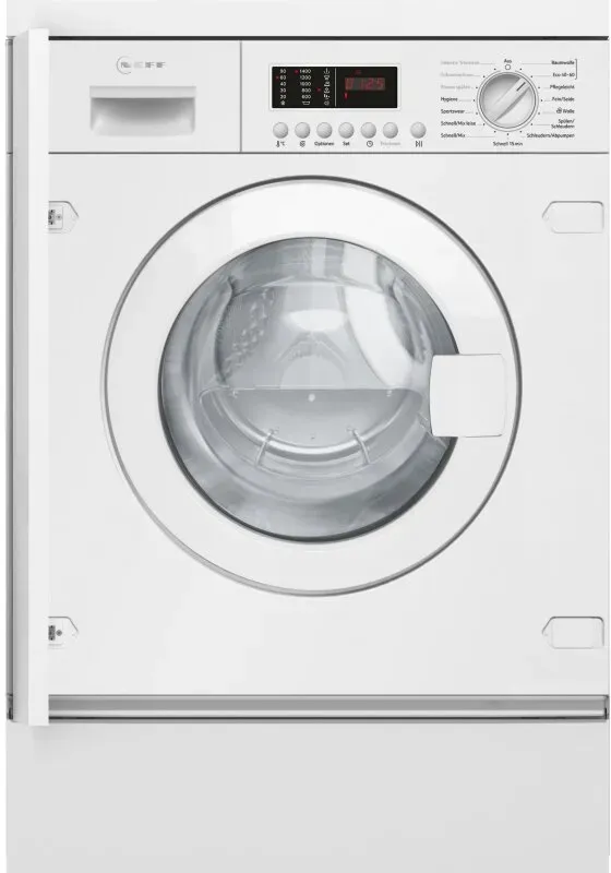 15 Händlerangebote bei billiger.de - EEK: E - Kategorie: Waschtrockner - Neff - Großes Display mit 24h Endzeitvorwahl Die neuen LED-Anzeigen sorgten für eine noch intuitivere Bedienung. Klare Touch-Symbole und EinKnopf-Programme machen die Bedienung kinderleicht. Noch mehr Freiheit bietet die 24 Stunden Endzeitvorwahl: Legen Sie bis zu einen Tag im Voraus fest, wann die Wäsche fertig sein soll. Aqua Stop Dieses Sicherheitssystem verhindert bei der NEFF Einbauwaschmaschine Wasserschäden absolut zuverlässig - unabhängig vom Stromnetz. Das Sicherheitssystem befindet sich zwischen Wasserhahn und Gerät. 7kg Waschen/4kg Trocknen In einer Küche gehört es zum guten Ton, die ärmel hochzukrempeln und sich die Hände schmutzig zu machen. Und nicht nur die Hände - egal, wie viele schmutzige Tischdecken, Kochschürzen und Geschirrtücher sie am Ende haben, die 52 Liter Trommel hat ein Fassungsvermögen von 7 kg beim Waschen und 4 kg beim Trocknen. Einbau-Waschtrockner, 7/4 kg Neff V6540X3, Frontlader, Integriert, Weiß, Links, 52 l, 4 kg Neff V6540X3. Ladetyp: Frontlader, Geräteplatzierung: Integriert, Produktfarbe: Weiß. Nennkapazität (Waschen & Trocknen): 4 kg, Maximale Schleuderdrehzahl: 1355 RPM, Schleuder-Klasse: B. Kabellänge: 2,2 m, Höhenverstellbare Füße: 1,5 cm. Energieeffizienzklasse (Waschen): E, Energieeffizienzklasse (Waschen & Trocknen): E, Wasserverbrauch pro Zyklus (Waschen): 44 l. Tiefe: 584 mm, Breite: 595 mm, Höhe: 820 mm - GTIN:4242004274322 ![]() NEFF V6540X3, Waschtrockner