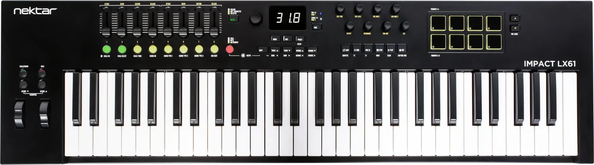 Kategorie: Synthesizer - Nektar - GTIN:0859383002534 - 61 anschlagdynamische Tasten mit neuer 'Clean-Action'-Tastatur, 8 beleuchtete, anschlagdynamische Pads mit LED-Feedback, Umfangreiche DAW-Integration und kreative Funktionen (Scale, Chord, Hold), Zuordnung von Noten zu Pads direkt über die Tastatur, Vielfältige Echtzeit-Steuerungsmöglichkeiten, Inklusive Native Instruments Komplete Select 15 , MOK Miniraze, Bitwig Studio 8-Track, - 198,00 Euro bei musikhaus-kirstein.de - gefunden von billiger.de ![]() ![]() Nektar Impact - LX61 Mk3 eBay 61 Tasten MIDI Controller Keyboard DAW8 Pads USB Master