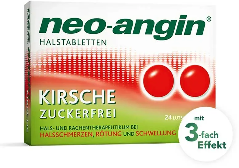 neo angin - EAN: 4008617148395 - PZN: 08997145 Neo Angin Halstabletten Kirsche zuckerfrei 24 Lutschtabletten - bei volksversand.de - aus Yadore Produktdaten ![]() ![]() neo-angin Halstabletten Kirsche zuckerfrei | Lutschtabletten bei beginnenden, lästigen Halsschmerzen | Für Erwachsene & Schulkinder | 24 Stück