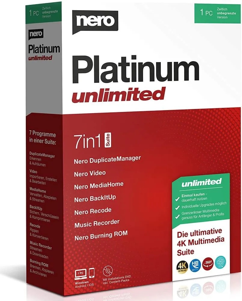 Nero platinum suite 2025 META PreisvergleichMit dem Meta-Preisvergleich suchen Sie gleichzeitig bei den großen Preisvergleich Portalen!Jetzt live Suche nach nero platinum suite 2025 starten! Nero platinum suite 2025 KaufberatungBei der Suche nach der Nero Platinum Suite 2025 sollten Sie beachten, dass es sich um eine umfassende Multimedia-Software für Windows handelt, die viele Funktionen für Medienverwaltung, Brennen, Kopieren, Bearbeiten und Sicherung bietet. Die Suite ist als All-in-One-Lösung konzipiert und eignet sich besonders für Nutzer, die Videos, Fotos und Musik professionell bearbeiten und verwalten möchten[1][2][3]. Wichtige Produktmerkmale und Funktionen sind:
