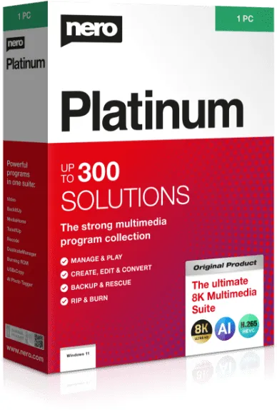 Kategorie: Brennsoftware - Nero - GTIN:4052272002943 - Entdecken Sie ganz neue Möglichkeiten. Denn erst eine gute Software erschließt das volle Potential Ihrer Hardware. So selbstverständlich wie Office und Anti-Virus gehört die Nero Platinum Suite auf einen vollwertigen PC. Im Nero Platinum Suite 2025 sind enthalten: Nero Video Nero DuplicateManager Nero MediaHome Nero BackItUp Nero Recode Nero Burning ROM Nero TuneItUp Nero AI Photo-Tagger Nero USBxCopy Neue Funktionen der Nero Platinum Suite 2025 Die Neurungen in Nero Platinum Suite 2025 sind die, auf die Sie gewartet haben. Die neuesten Versionen von den beliebtesten Programmen in dieser Suite bieten eine Reihe von Funktionen und Verbesserungen, die Ihre Arbeit erleichtern und optimieren werden. Gleichzeitig wird Ihnen die Möglichkeit geboten, Ihre kreativen Ideen umzusetzen und Ihr Werkstück in Szene zu setzen. Neue Nero LifeLong Services: Mit den neuen Nero LifeLong Services wird ein integriertes, fortschrittliches Update-Management angeboten, das es dem Nutzer ermöglicht, die aktuellsten Versionen der Nero Anwendungen in seinem Paket schnell und einfach aufzuspüren. 8K HEVC Unterstützung in Nero Video Nero Video unterstützt 8K-Videos und hat jetzt den neuen HECV-Videokompressionsstandard hinzugefügt: HEVC Ultra HD 8K MP4 Videobearbeitung, Exportformatkonvertierung. HECV soll 200% effizienter sein als 200% H.264 bei 40% kleineren Ausgabedateien. Nero Recode unterstützt H.265-HECV Nero Recode enthält jetzt H.265-HECV, ... ![]() ![]() Nero Platinum Suite 2025 unbegrenzte Laufzeit