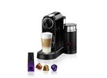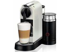 De'Longhi - EAN: 8004399331402 - Kapselmaschine Nespresso CitiZ&Milk von DeLonghi, Limousine BlackNespresso Original bietet Ihnen mit klassischen Espressos und außergewöhnlichen Kaffeekreationen einen unvergesslichen Kaffeegenuss.Die Nespresso CitiZ&Milk ist perfekt für die Zubereitung von heißen und kalten Kaffeespezialitäten mit heißer Milch oder Milchschaum.2 Optionen zur Kaffeeauswahl: Wählen Sie zwischen Espresso und Lungo.Integrierter Milchaufschäumer: Kreieren Sie unvergleichlichen Cappuccino und Latte Macchiato mit dem integrierten Aeroccino3 Milchaufschäumer.Kultiges Design: Das mit dem Red Dot Award ausgezeichnete Design passt perfekt in jede urbane Küche.Energiesparend: Die automatische Energiesparfunktion schaltet die Maschine nach 9 Minuten Inaktivität ab, damit weniger Energie verbraucht wird.Nachhaltigkeit: Nespresso Kaffeekapseln sind recycelbar und können ganz einfach über die Gelbe Tonne, die Nespresso Boutiquen und an Wertstoffsammelstellen entsorgt und so wiederverwertet werden.Die Kapseln werden mit mindestens 80% recyceltem Aluminium hergestellt, einem Material, welches bei entsprechender Entsorgung immer wieder recycelt werden kann.Nur für Nespresso Original Kapseln. BeschreibungAktualisiertes retromodernes Design mit integriertem Milchaufschäumer Mit ihrem neuen Design erfreut die CitiZ & Milk weiterhin sowohl Kaffeetrinker als auch Designliebhaber und verleiht Kaffeeritualen auf der ganzen Welt einen Hauch von Eleganz. Zu den benutzerfreundlichen ... Diese Nespresso Kapselmaschine CITIZ EN 267.WAE von DeLonghi inklusive Aeroccino Milchaufschäumer ist ein praktisches Komplettpaket für Kaffeeliebhaber. ![]() NESPRESSO Kapselmaschine 'CITIZ EN 267.WAE von DeLonghi, White', weiß, B:23,7cm H:27,7cm T:37,2cm, Kaffeemaschinen, inkl. Aeroccino Milchaufschäumer, Willkommenspaket mit 7 Kapseln