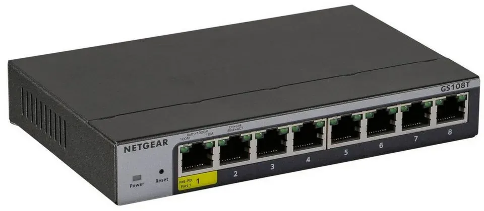 Kategorie: Netzwerk-Switches - Netgear - GTIN:0606449138634 - Produktdetails Lieferumfang , Netgear GS108T-300PES + Zubehör laut Herstellerangabe, Technische Daten WEEE-Reg.-Nr. DE , 40725385, - 76,01 Euro bei OTTO - gefunden von billiger.de Reichelt.de bietet hier einen GS108T3 mit PoE, was für die Stromversorgung von Endgeräten nützlich ist. Reichelt.d e NETGEAR GS108T3 - Switch, 8-Port, Gigabit Ethernet, PoE