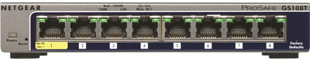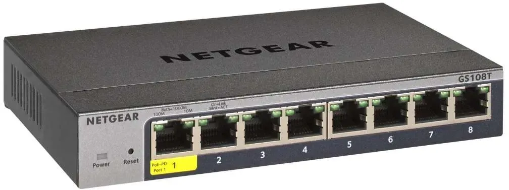 Auf Lager Versand durch AmazonNETGEAR 8-Port Gigabit Ethernet Smart Switch (GS108T): Managed, mit 1 PD-Port, optionales Insight Cloud , Desktop oder Wandmontage geräuscharmer Betrieb und Service über die gesamte Lebensdauer
