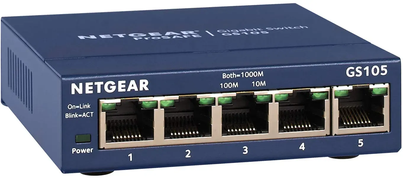Zusammenfassung: | Merkmal | Details | |--------------------------|------------------------------------------| | Ports | 5 x Gigabit Ethernet (10/100/1000 Mbps) | | Management | Unmanaged (Plug-and-Play) | | Energieeffizienz | Ja, IEEE 802.3az | | Gehäuse | Kompaktes Metallgehäuse, wandmontierbar | | Geräuschentwicklung | Fanlos, aber mögliches leises Summen | | Preis | Ca. 20-40 Euro (neu), ca. 10 Euro (gebraucht) | | Alternative Modelle | GS105e (mit Management, ca. 45 Euro) | Wenn Sie einen einfachen, zuverlässigen und günstigen 5-Port-Gigabit-Switch suchen, ist der Netgear ProSafe GS105 eine sehr gute Wahl. Für erweiterte Funktionen lohnt sich ein Blick auf die GS105e-Version. Für die Suche und den Kauf können Sie den Namen Netgear ProSafe GS105 im Meta-Preisvergleich verwenden. Jetzt live Suche nach netgear prosafe gs105 starten! Empfohlene Netgear prosafe gs105 Angebote*Durch Käufe über Links zu Händlern kann diese Website eine Provision erhalten, u.a. durch das eBay Partner Network und das AmazonPartnerNetHier ist eine Auswahl von 15 repräsentativen und empfehlenswerten Netgear ProSafe GS105 Switches, die verschiedene Preisbereiche und Typen abdecken: Mit nur 11.19 Euro ist dies ein extrem preiswertes gebrauchtes Angebot für einen ProSafe Plus Switch, ideal für preisbewusste Käufer. ![]() ![]() Netgear ProSafe - Plus Switch eBay 5 Port Switch GS105E