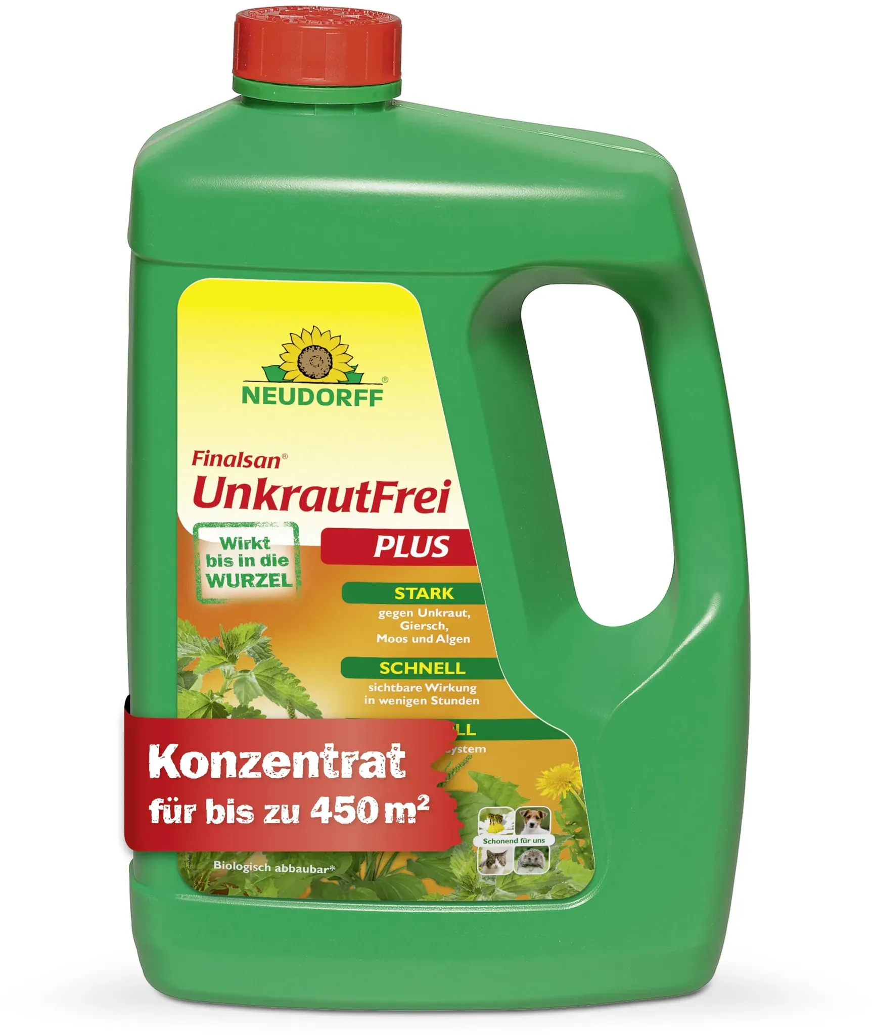 Kategorie: Pflanzendünger - NEUDORFF - GTIN:4005240023792 - Kraftvoller Unkrautvernichter: Beseitigt schnell und wochenlang Unkräuter und Gräser, auch Problemunkräuter wie Ackerschachtelhalm, Giersch, Moos und Algen ohne Glyphosat!2fach-Wirkung: Natürliche Fettsäure zerstört Zellwände der Pflanzen für Sofortwirkung. Wachstumsregulator stoppt Zellteilung und verhindert wochenlang NeuaustriebWirkt bis in die Wurzel: Herbizid wirkt auf grüne Pflanzen bis in die Wurzel und ist auch bei niedrigen Temperaturen wirksam. Für Moosentferner empfehlen wir Finalsan RasenMoosfreiEinfache Anwendung: Entferner mit Wasser verdünnen, Unkraut besprühen, bis es braun wird und abstirbt. Besonders wirksam bei einer Unkrauthöhe von 5-10 cmUmweltfreundliches Unkrautmittel: Biologisch abbaubar, schonend für Bienen, Haustiere und Igel. Behandelte Flächen können nach dem Antrocknen sofort wieder benutzt werden - 46,29 Euro bei Kaufland.de - gefunden von billiger.de Dieses Doppelpack mit 2 x 2 Liter Konzentrat für 55.19 Euro ist eine effiziente Lösung für umfangreiche Unkrautprobleme. ![]() ![]() Neudorff Finalsan UnkrautFrei Plus Konzentrat, kraftvoller Unkrautvernichter, der bis in die Wurzel wirkt. Schnell wirkender Unkraut Entferner 2x 2 Liter