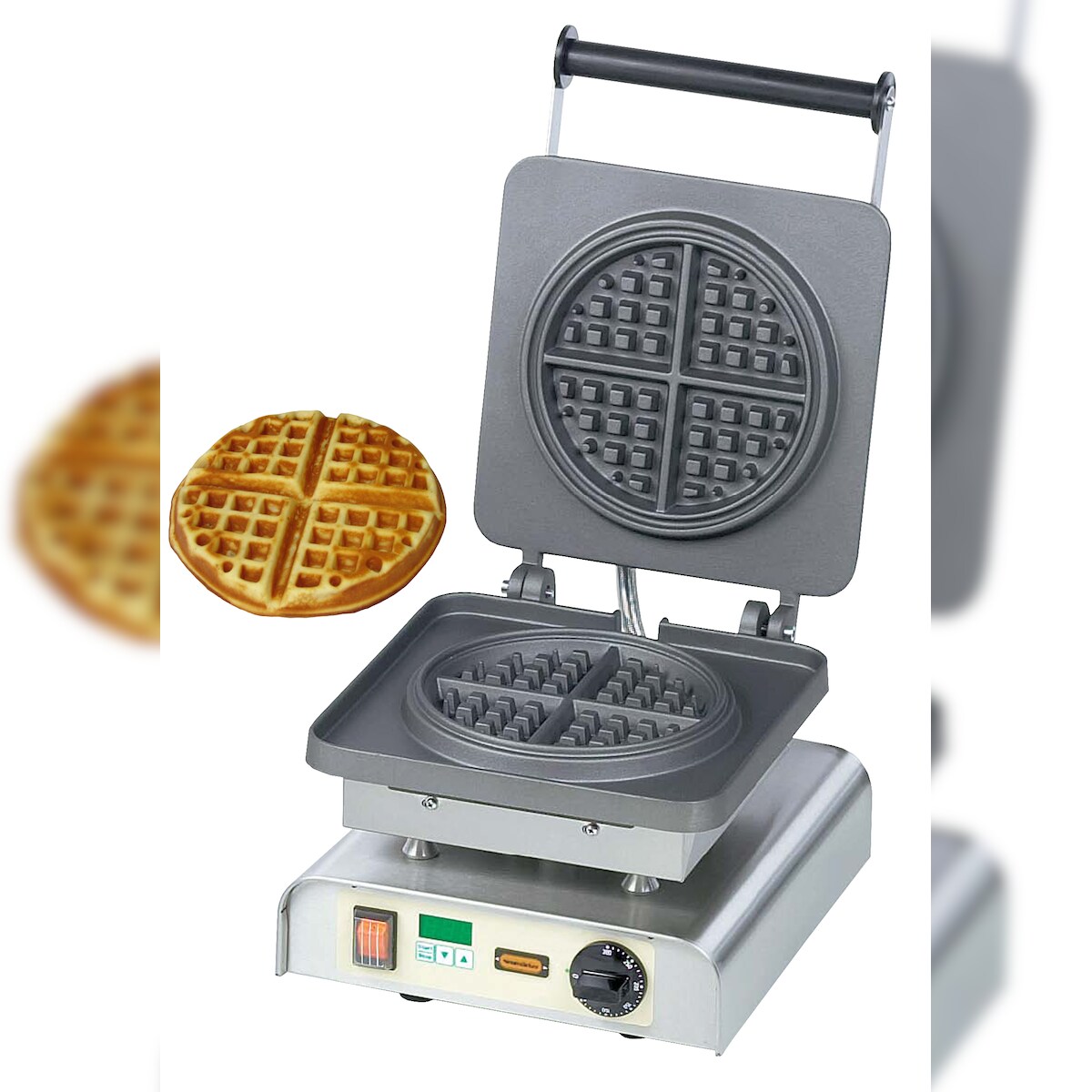 Der angezeigte Preis könnte seit dem letzten Update gestiegen sein - EAN: 4022955003055 - 2 heiße und 2 kalte 1/6 GN Behälter (je 1,5 Liter) thermostatische Regelung für 2 trockenbeheizte Behälter eutektische Kühlung für 2 kalte Behälter massive Messingverzierungen Gehäuse Edelstahl schwarz einbrennlackiert - Zustand: NEW - bei Metro.de - gefunden von Buycentral ![]() Neumärker Waffeleisen Sunny I mit Digitaltimer