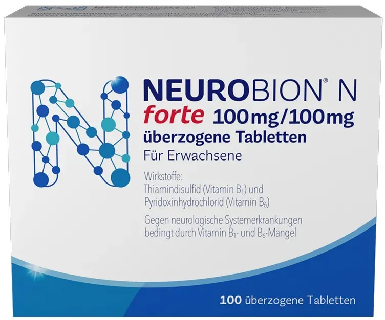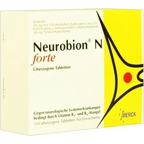 0,25 /Stück - Kategorie: Arzneimittel - WICK - GTIN:4150039623438 - PZN:03962343 - Neurobion N forte Dragees Anwendung: Neurologische Systemerkrankungen durch nachgewiesenen Mangel der Vitamine B1 und B6 Zu Risiken und Nebenwirkungen lesen Sie Packungsbeilage und fragen Sie Ihren Arzt oder Apotheker - 24,80 Euro bei medikamente-per-klick.de - gefunden von billiger.de Ein sehr attraktiver Preis für die größte Packungsgröße, perfekt für den langfristigen Bedarf. ![]() ![]() WICK NEUROBION N forte überzogene Tabletten 100 St