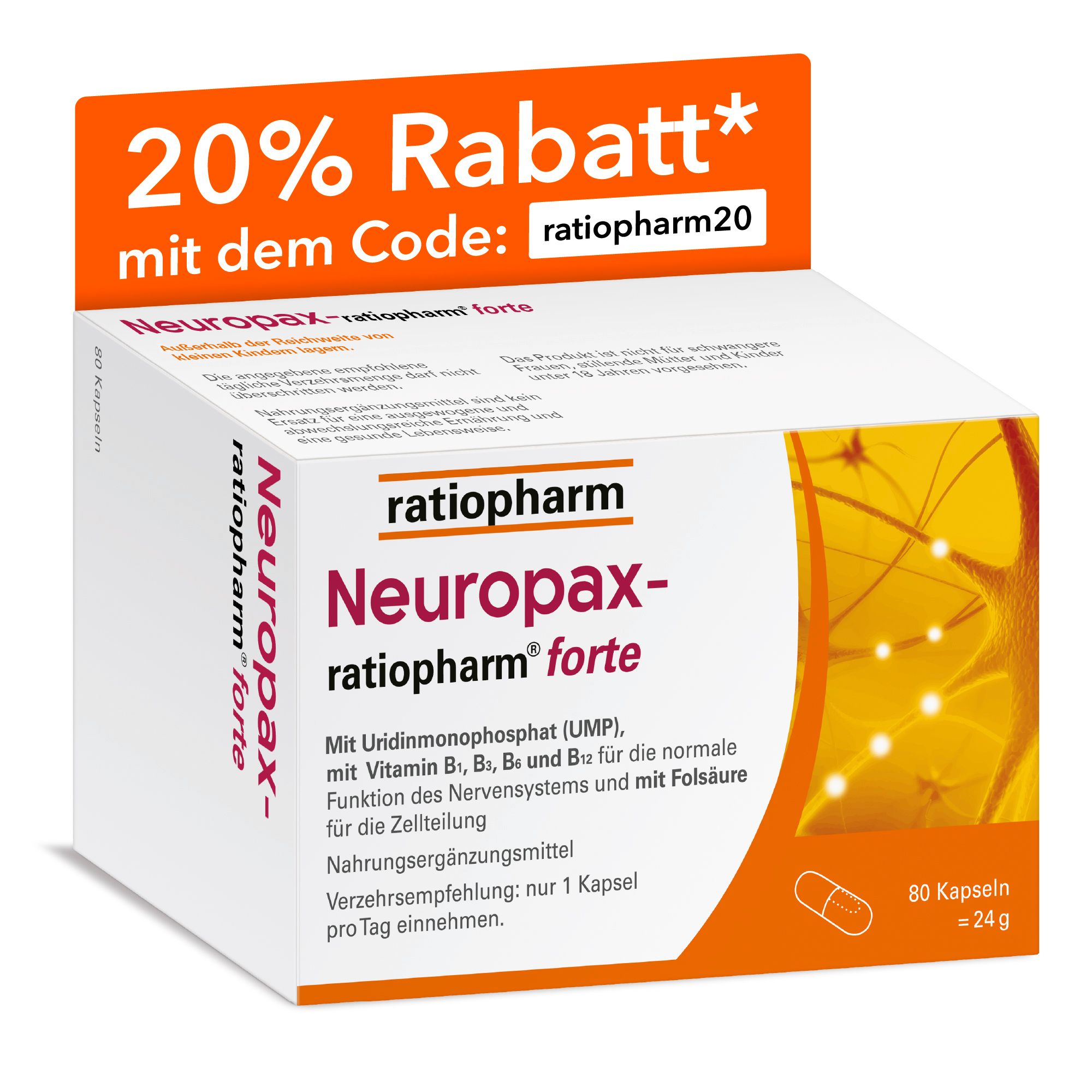 0,55 / 1 st - Ratiopharm - EAN: 4150193865804 - NEUROPAX-ratiopharm forte Kapseln 80 St von ratiopharm GmbH günstig bei Ihrer Beraterapotheke bestellen - bei die-beraterapotheke.de - aus Yadore Produktdaten ![]() ![]() NEUROPAX-ratiopharm forte Kapseln 80 St