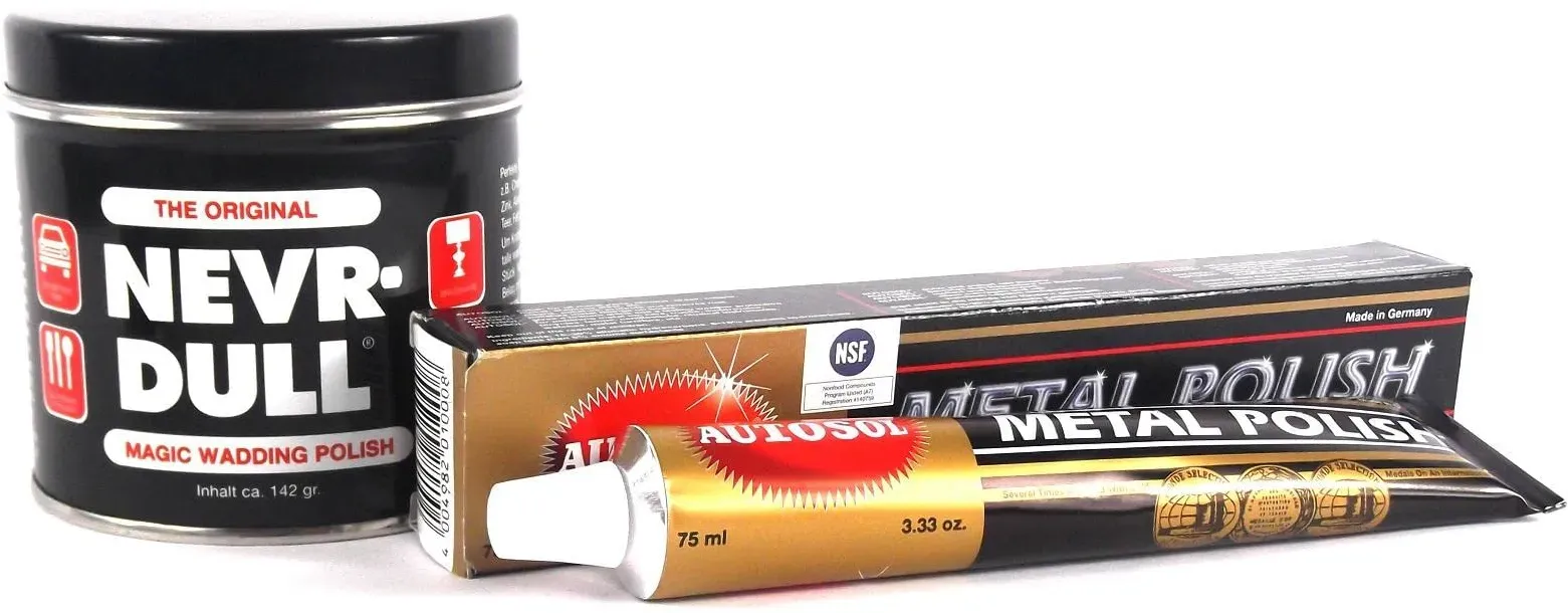 Kategorie: Reinigungsmittel - NEVR DULL - GTIN:0674376647819 - NEVR DULL Polierwatte für Chrome, Alu, Messing und andere Metalle 142 g & AUTOSOL Metal Polish Metallpolitur Chrompolitur 75 ml - 44,89 Euro bei Amazon Marketplace Automotive - gefunden von billiger.de ![]() ![]() NEVR DULL Polierwatte für Chrome, Alu, Messing und andere Metalle 142 g & AUTOSOL Metal Polish Metallpolitur Chrompolitur 75 ml