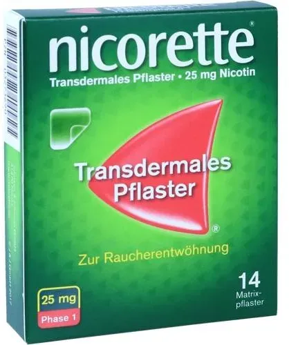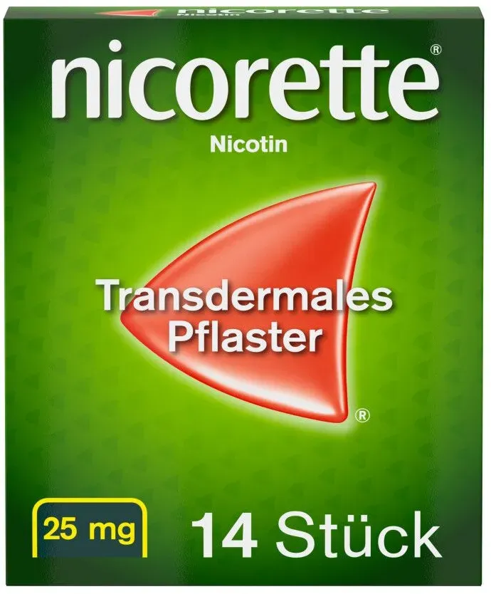 Kenvue Germany GmbH (OTC) - EAN: 4150032736906 - Einzigartig im Markt: Das 16 Stunden Pflaster, das den natürlichen Wach-Schlaf-Rhythmus respektiert - keine Nikotinzufuhr während des SchlafensDie nicorette Pflaster 25 mg werden auf der Haut angewendet und geben über einen Zeitraum von 16 Stunden hinweg therapeutisches Nikotin an den Körper ab. So lässt sich den Entzugserscheinungen bei einer Raucherentwöhnung entgegenwirken. Mit 25 mg enthaltenem Nikotin eignen sich die Pflaster für Raucher, die bisher mehr als 20 Zigaretten täglich konsumieren und Nichtraucher werden wollen.Dank ihrer geringen Größe und der unauffälligen Farbe sind die Pflaster diskret.AnwendungDie Anwendung des nicorette Pflaster 25 mgDie nicorette Pflaster mit 25 mg Nikotin geben direkt nach dem Aufkleben auf die Haut über einen Zeitraum von 16 Stunden hinweg gleichmäßig Nikotin an den Körper ab. So werden Rauchverlangen und andere Entzugserscheinungen wie innere Unruhe und gesteigerter Appetit gelindert.Die Anwendung der nicorette Pflaster 25 mg ist unkompliziert: Das Nikotinpflaster wird einfach auf die Haut geklebt. Nach einer Anwendungsdauer von maximal 16 Stunden sollte das Pflaster vor dem Zubettgehen entfernt werden. Am besten eignen sich für die Anbringung möglichst haarfreie Stellen, wie der Oberarm, der Oberkörper oder die Hüfte. Damit das Pflaster über den vorgesehenen Zeitraum fest sitzt, ist es sinnvoll, die Haut vor dem Aufkleben trocken und fettfrei zu halten. Für kurze Duschen kann das ... Ein Standardangebot für eine Einzelpackung von einem bekannten Anbieter. ![]() ![]() Kenvue Germany GmbH (OTC) NICORETTE TX Pflaster 25 mg 14 St 03273690