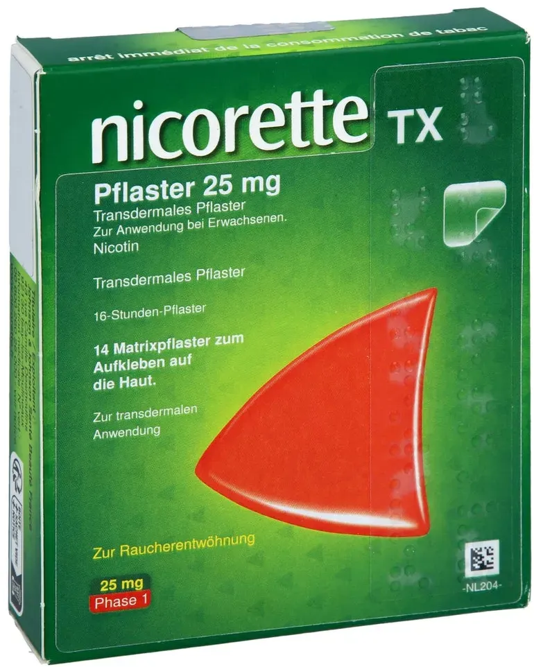 2,50 /Stück - Kategorie: Rauchentwöhnung - Nicorette - GTIN:0609788915300 - PZN:03273690 - NICORETTE TX Pflaster 25 mg 14 St - 34,93 Euro bei Preisapo - gefunden von billiger.de Dieses Reimport-Angebot bietet eine preisgünstigere Alternative für eine Einzelpackung. ![]() ![]() KOHLPHARMA GMBH Nicorette TX Pflaster 25 mg Reimport - Reimport 14 St