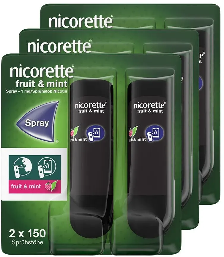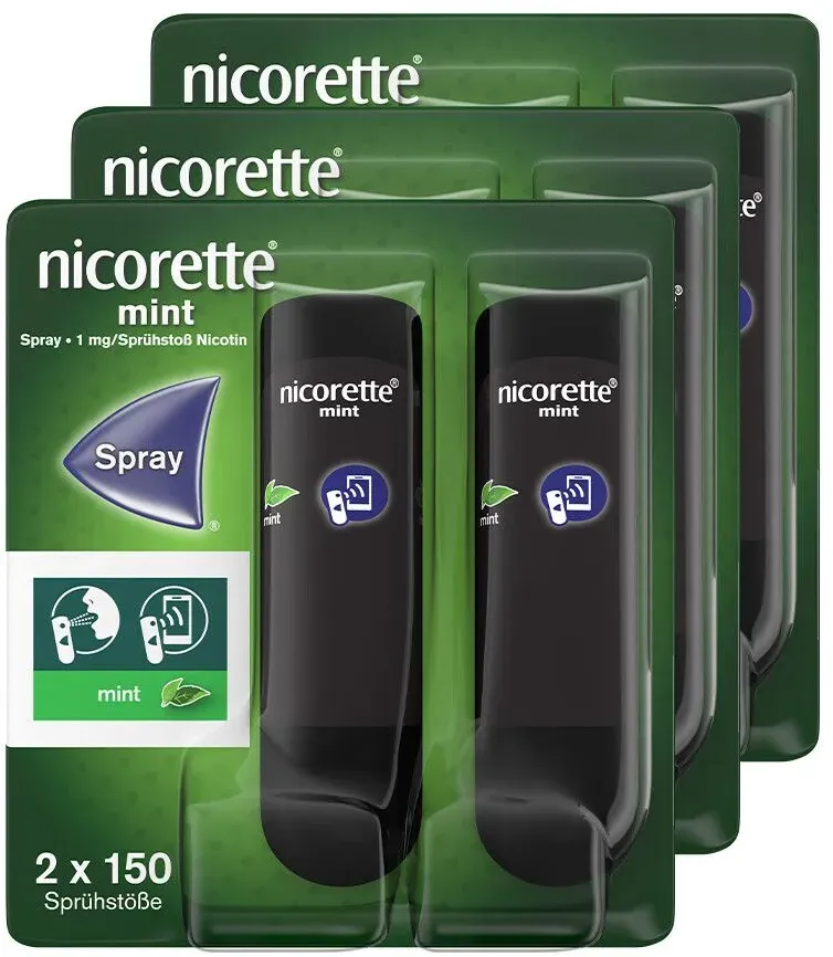 Verfügbarkeit: 1-2 Werktage - 61,99 €/Set - Kategorie: Arzneimittel - Nicorette - GTIN:4150800237420 - PZN:80023742 - Nicorette Fruit & Mint Spray 3er Pack 1 Set - rezeptfrei - von Kenvue Germany GmbH (OTC) - Spray - 1 Set - 61,99 Euro bei DocMorris Apotheke - gefunden von billiger.de Dieses 2x2 Pack des Mint Sprays für 77.98 Euro ist eine größere Packung für langfristige Nutzung und bietet einen besseren Stückpreis. ![]() ![]() nicorette mint Spray mit Nikotin 2x 2 St 2x2