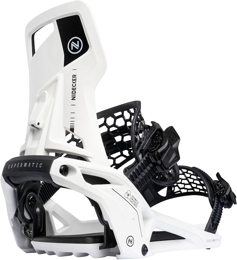 NIDECKER - EAN: 7630949101198 - SUPERMATIC OG Bindung 2026 white - XL Die erste selbstschließende Zwei-Riemen-Bindung der Welt, die mit jedem Snowboardboot funktioniert. Rider Approved. Letztes Jahr hat sich alles geändert: Supermatic ist da. Die erste selbstschließende Zwei-Riemen-Bindung der Welt, die mit jedem Snowboard-Boot funktioniert. Ein einfaches, schneesicheres System, bei dem man die Schuhe nicht mehr wechseln muss und das man wie eine normale Bindung benutzen kann, wenn man sich irgendwo im Skigebiet oder im Tiefschnee befindet. Jetzt gibt es die Supermatic in drei neuen Farbvarianten - olivgrün, weiß und schwarz. Außerdem gibt es eine neue XL-Größe, so dass die Vorteile dieser neuen Bindung nun auch für Fahrer mit größeren Füßen verfügbar sind. Um Supermatic einzustellen, werden die Riemen an den Schuh angepasst und mit den LSR-Schnallen fixiert. Mit einem Druck auf den Auslösehebel an der Seite hebt sich das Fersenpedal, und der Hiback und die Riemen öffnen sich, so dass Sie Ihren Fuß herausnehmen können. Um wieder einzusteigen, schieben Sie den Stiefel hinein und nach unten, und er schließt sich von selbst. Es ist eine einfache, schlichte und elegante Lösung für alle, die schon immer dachten, dass die normale Art des Anschnallens besser sein könnte.Supermatic hat einen mittelsteifen Flex und ist eine solide Leistung für jede Art von All-Mountain-Riding. Wir haben ihn auf Pisten, steilen und tiefen Freeride-Lines und im Park mit einer Reihe von Fahrern ... ![]() ![]() NIDECKER SUPERMATIC OG Bindung 2026 white - XL