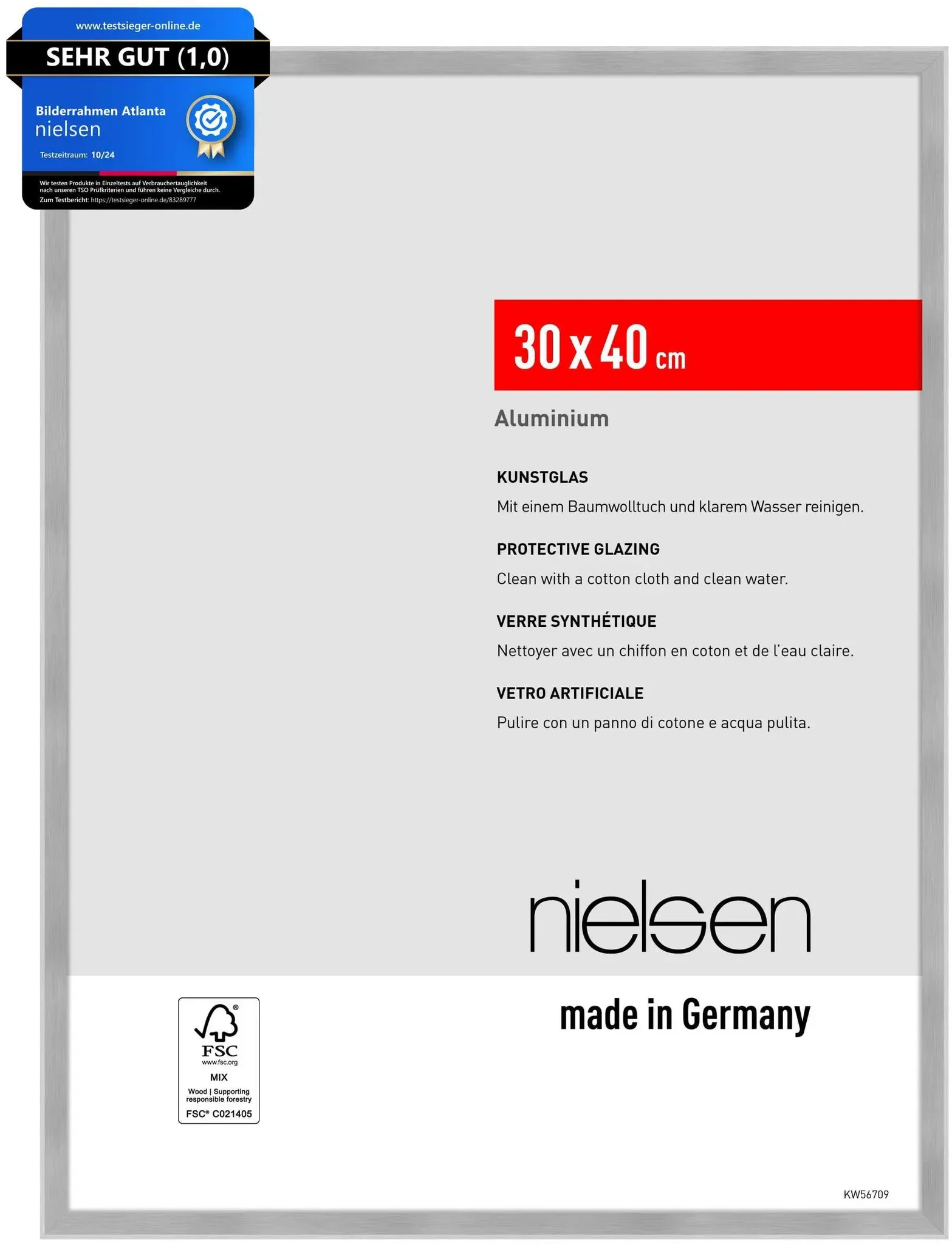 Auf Lager Versand durch Amazonnielsen Bilderrahmen, 30 x 40 cm, Aluminium, Silber matt, Fotorahmen zum Aufhängen im Hoch- & Querformat, bruchsicheres Kunstglas, Atlanta