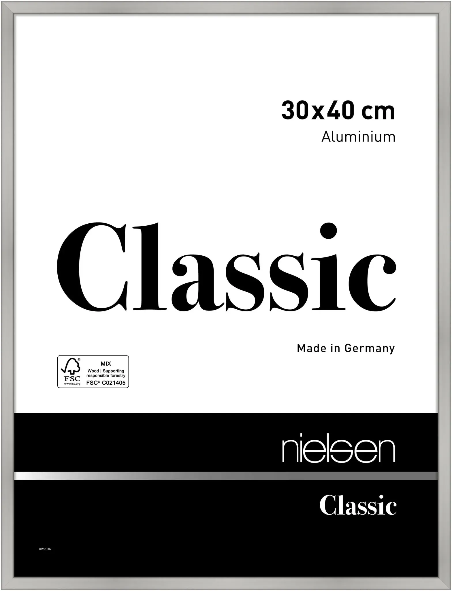 3 Händlerangebote bei billiger.de - Kategorie: Bilderrahmen - Nielsen - Qualität und Design: Der Aluminiumrahmen Classic mit einem Profil von 9,2 mm besteht aus formastabilen Aluminium und ist Made in Germany. FSC-zertifiziert (Lizenzcode: FSC C021405): Die Serie ist FSC-zertifiziert und verfügt über eine stabile MDF-Rückwand mit Drehfedern. Einfache Montage: Die bereits angebrachten Aufhänger ab DIN A4 ermöglichen eine mühelose Anbringung des Rahmens sowohl im Hoch- als auch im Querformat. Unser Versprechen: Wir sind überzeugt, dass unsere Rahmen ein hochwertiges Highlight in Ihrem Zuhause darstellen werden. Sollte dennoch etwas nicht Ihren Erwartungen entsprechen, stehen wir Ihnen gerne zur Verfügung. Hinweis: Alle angegebenen Maße beziehen sich immer auf das Format des Motivs. - GTIN:4012292330044 ![]() ![]() nielsen Bilderrahmen, 30 x 40 cm, Aluminium, Silber matt, Fotorahmen zum Aufhängen im Hoch- & Querformat, Echtglas, Classic