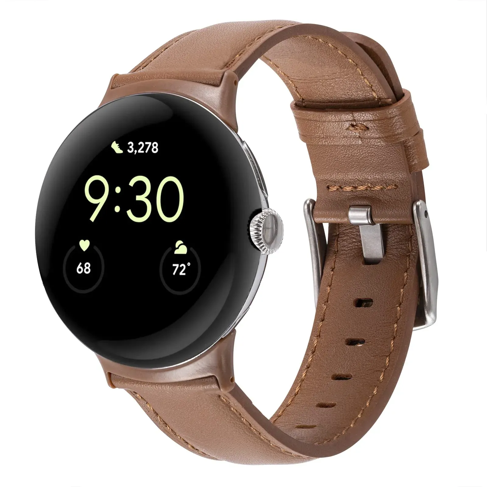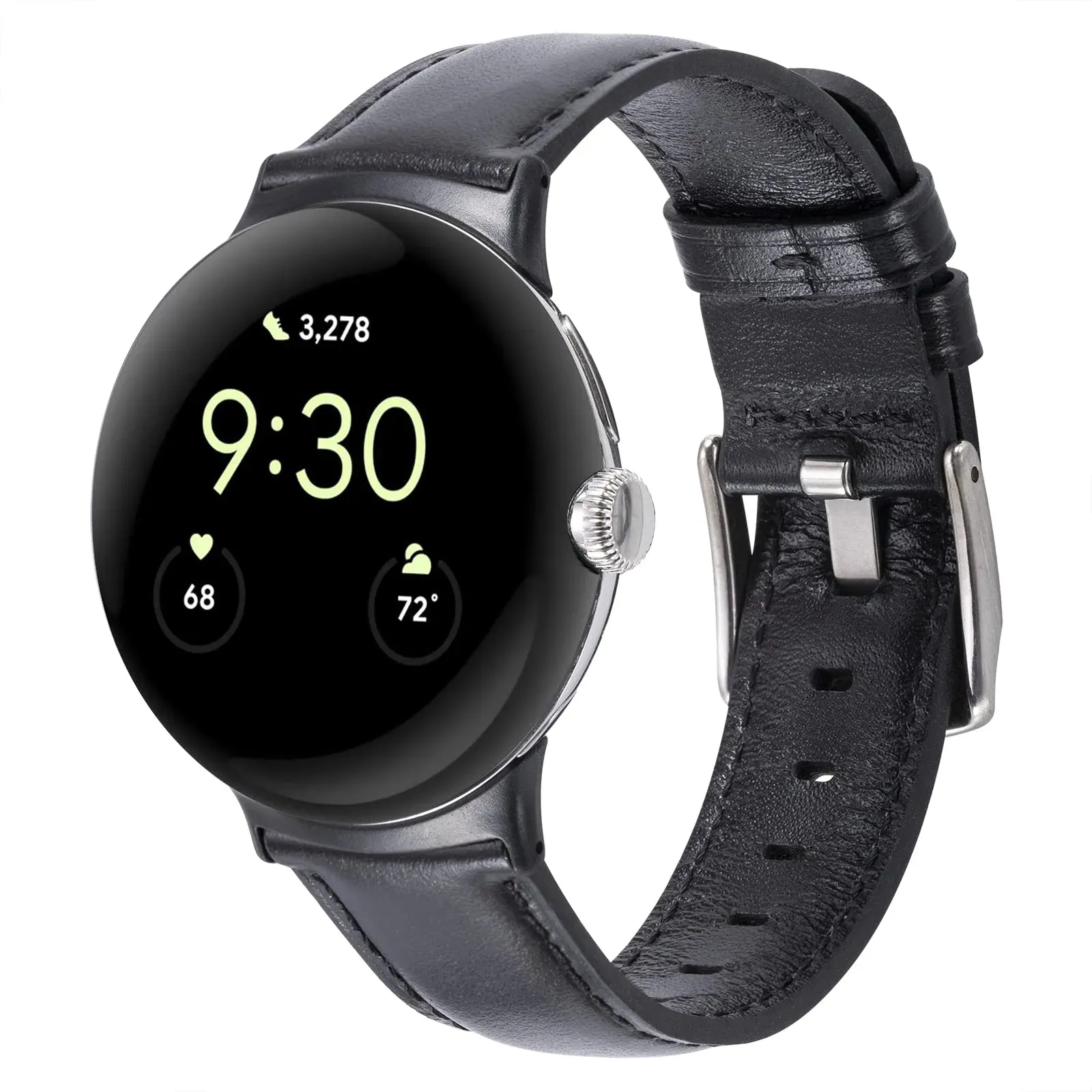 Auf Lager Versand durch AmazonNigaee Kompatibel für Google Pixel Watch 3/2/1 Armband, Leder Armband, Schwarz, 20 mm, Unisex, Klassisch