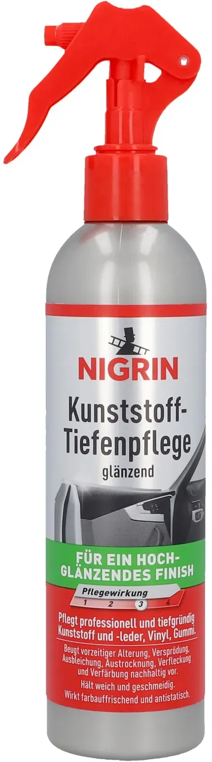 7 Händlerangebote bei billiger.de - Kategorie: Autoreinigung & Pflege - Nigrin - schützt alle Kunststoffe vor vorzeitiger Alterung Pflegt professionell und tiefgründig Kunststoff und -leder, Vinyl, Gummi wirkt farbauffrischend hält weich und geschmeidig Ausführung: seidenmatt Enthält 1,2-Benzisothiazol-3(2H)-on. Kann allergische Reaktionen hervorrufen. - GTIN:4008153740367 Dieses Angebot ist besonders preiswert für die glänzende Variante und somit ideal für preisbewusste Käufer. ![]() ![]() Nigrin Kunststoff-Tiefenpflege Glänzend 300 ml