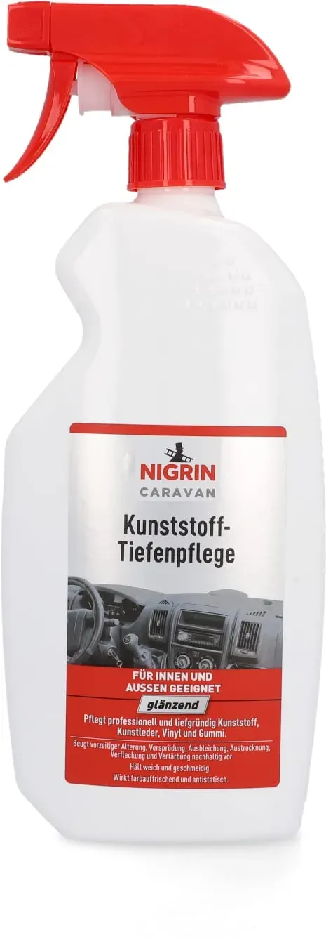 Kategorie: Caravan-Zubehör - Nigrin - GTIN:4008153202513 - VIELSEITIG: NIGRIN Kunststoff Tiefenpflege ist für ein breites Spektrum an Oberflächen geeignet, darunter Kunststoff, Kunstleder, Vinyl und Gummi EFFEKTIV: Die Kunststoff Tiefenpflege verhindert nachhaltig vorzeitige Alterung, Versprödung, Austrocknung und Ausbleichung von Materialien PFLEGEND: Mit seiner speziellen Formel sorgt die Kunststoff Tiefenpflege dafür, dass Kunststoffe weich und geschmeidig bleiben. OBERFLäCHENAUFWERTUNG: Durch die Nutzung der Kunststoff Tiefenpflege erhalten Kunststoffbauteile ihren originalen Glanz wieder. Zudem erstrahlen die Farben wieder kräftig wirkt außerdem antistatisch FLEXIBEL: das Cockpit und die Innenverkleidungen behandeln. Zum anderen ist die Kunststoff Tiefenpflege auch für Außenbereiche wie Stoßfänger und Anbauteile, geeignet. LANGZEITSCHUTZ: Durch die Kunststoff Tiefenpflege erhalten die behandelten Oberflächen einen Schutzfilm, der Wasser und Schmutz abweist. Dieser Schutz hält bis zu 6 Wochen an WICHTIG: Scheiben, Armaturengläser, Lenkrad, Pedale und Textilien nicht mit NIGRIN Caravan Kunststoff-Tiefenpflege behandeln - 14,51 Euro bei Amazon Marketplace Automotive - gefunden von billiger.de Dieses Angebot ist empfehlenswert, da es die seidenmatte Tiefenpflege im Sprayformat inklusive Mikrofaser-Tuch für eine sofortige Anwendung bietet. ![]() ![]() NIGRIN Kunststoff Tiefenpflege Seidenmatt 300ml Spray Tiefenpfleger + Mikrofaser-Tuch