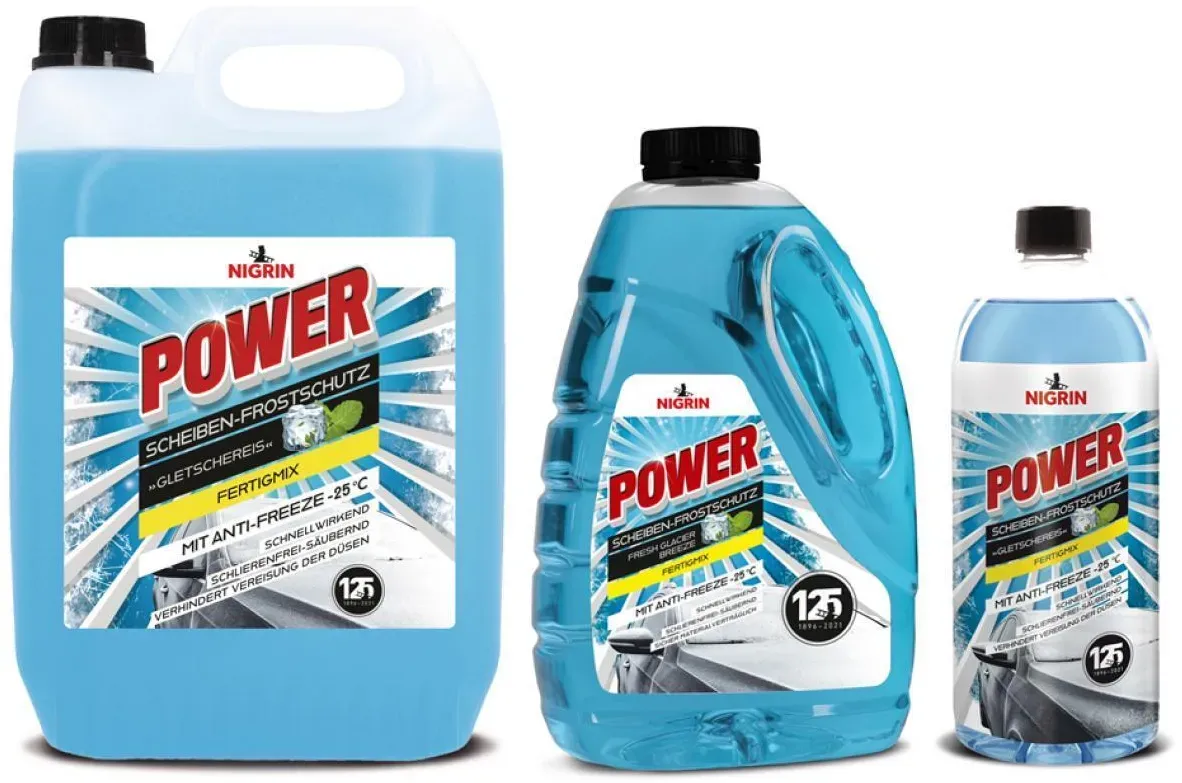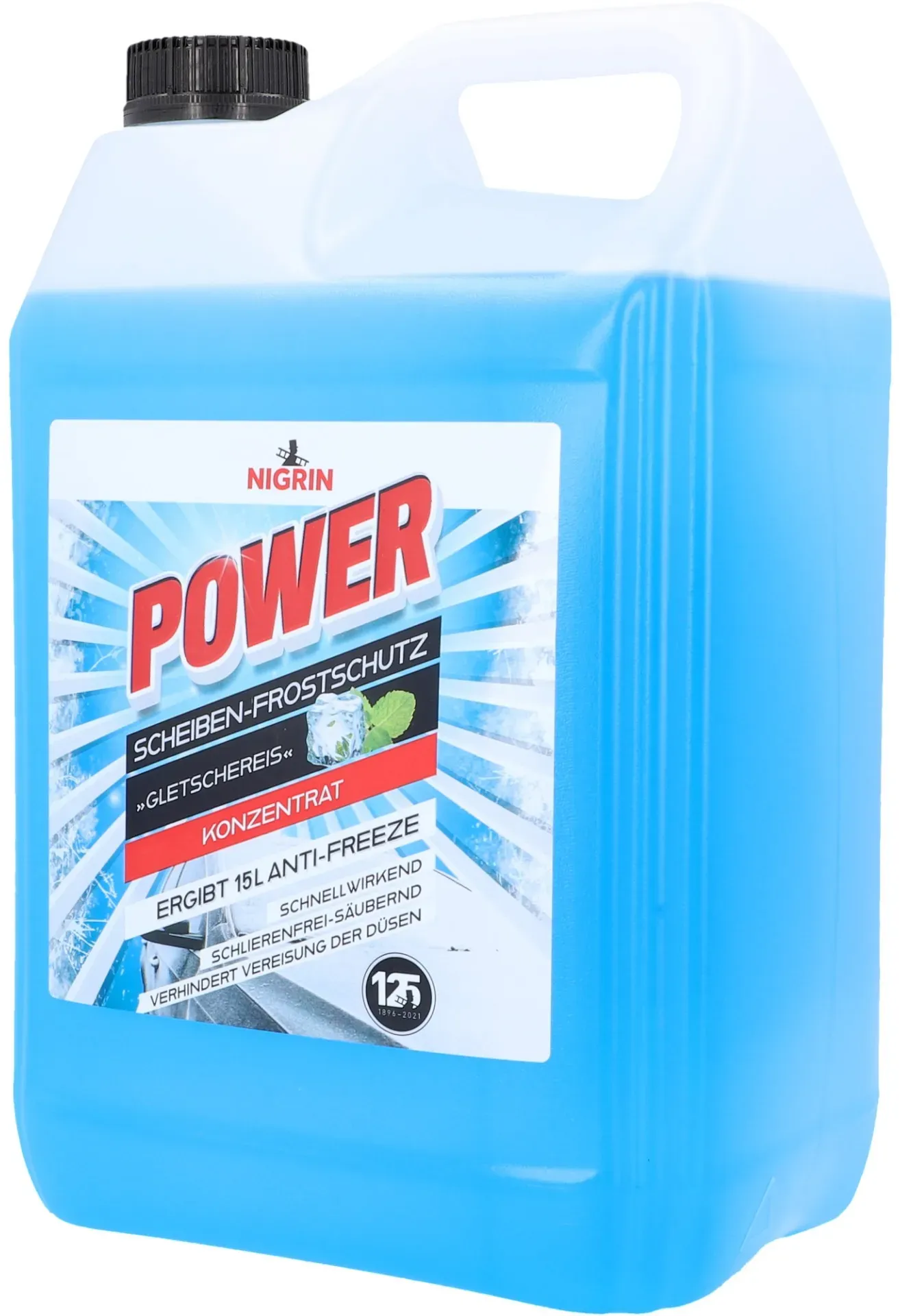 Auf Lager Versand durch AmazonNIGRIN POWER Scheiben-Frostschutz Konzentrat Gletscherfrische | 5 Liter | Reinigungszusatz für Autoscheiben und Scheinwerfer | wirksam bis -52 °C | polycarbonatverträglich | schlierenfrei