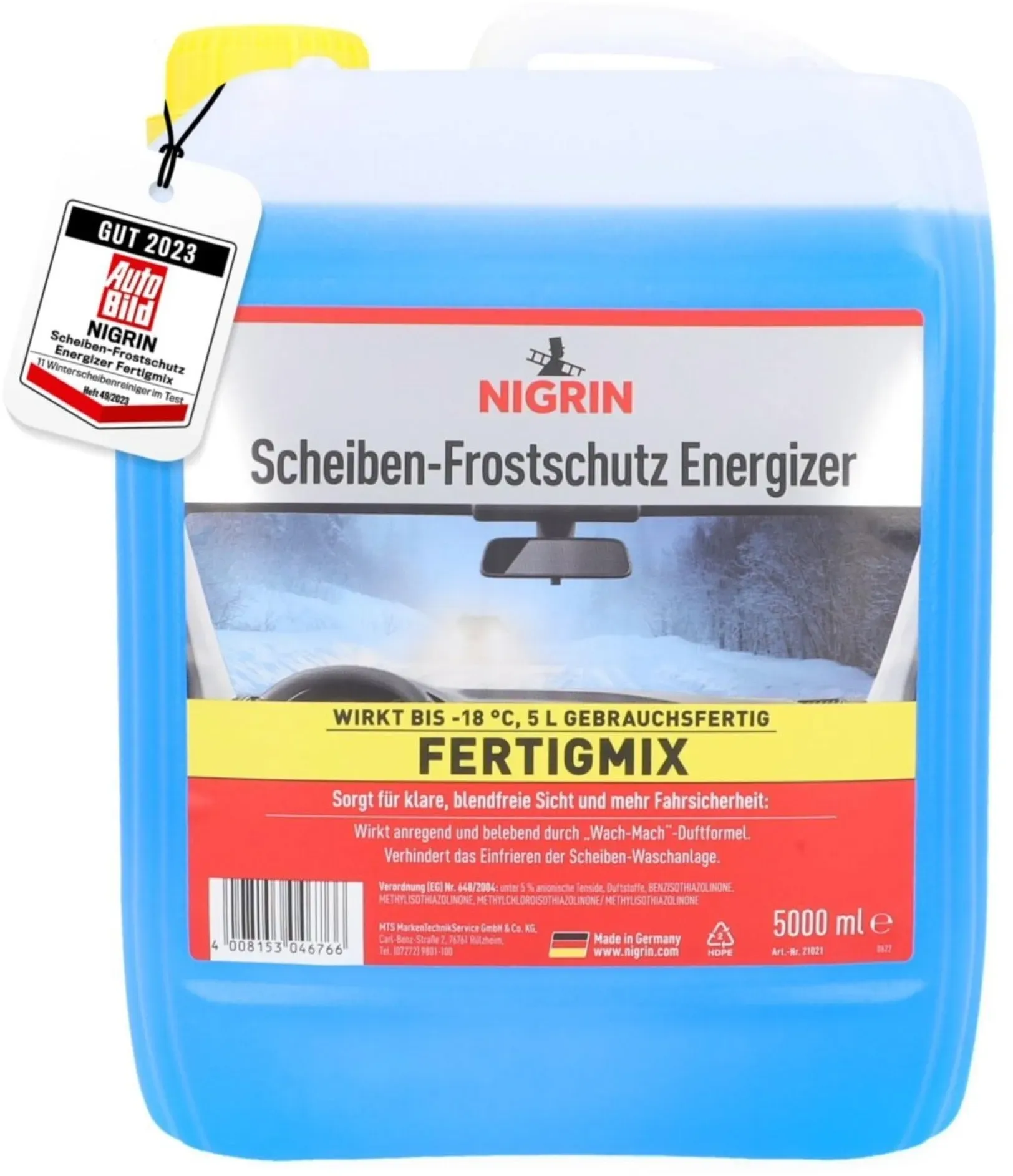 Auf Lager Versand durch AmazonNIGRIN Scheiben Frostschutz Fertigmix ENERGIZER | 5 Liter | wirksam bis -18°C | Reinigungszusatz für Autoscheiben und Scheinwerfer | gegen Schnee, Salz, Öl, Ruß | schlierenfreie Sicht | Wach-Mach Duft