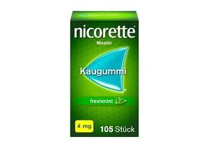 0.2 eur / 1 ct - Medizin & Heilmittel - EAN:4150073536350 - Mit nicorette R endlich aufhören zu rauchen nicorette R Kaugummi whitemint 4 mg - Eigenschaften des Nikotinkaugummis auf einen Blick Mit dem Rauchen aufhören mit nicorette R Kaugummi whitemint mit 4 mg Nikotin nicorette R Kaugummi whitemint 4 mg ist ein Nikotinkaugummi zur Raucherentwöhnung. Das aktive Kauen löst den Wirkstoff aus dem Kaugummi, hilft Sie abzulenken und lindert Ihr Rauchverlangen und weitere Entzugserscheinungen, die beim Aufhören mit dem Rauchen auftreten können. Dazu zählen beispielsweise innere Unruhe, gesteigerter Appetit und erhöhte Reizbarkeit. Das nicorette R Kaugummi 4 mg ist zuckerfrei und hat einen Zahnweiß-Effekt. Eine Packung enthält 30 Kaugummis und reicht bei einer Verwendung von 10 Kaugummis pro Tag für circa 3 Tage. In den ersten Wochen der Anwendung wird das Kauen von 8-12 Kaugummis pro Tag empfohlen. So geht's: Nikotinersatztherapie mit dem nicorette R Kaugummi 4 mg Aus dem Kaugummi wird durch aktives Kauen Nikotin gelöst. Über die Mundschleimhaut gelangt das Nikotin dann in die Blutbahn und erhöht den Nikotinspiegel im Blut. So lindert es Rauchverlangen und weitere Entzugserscheinungen. Die Anwendung wird über 12 Wochen empfohlen, wobei Sie Ihrem Körper nach und nach weniger Nikotin zuführen, indem Sie die Anzahl Kaugummis pro Tag reduzieren und Ihren Körper vollständig entwöhnen. Anwendung des nicorette R Kaugummi 4 mg - Auf das richtige Kauen kommt es an! Damit das ... Dieses Angebot ist mit 23.23 Euro für 105 Stück Nicorette Kaugummi 4 mg freshmint eine attraktive Option für den regelmäÃ?igen Gebrauch. ![]() nicorette® Kaugummi freshmint, 4 mg Nikotin 105 St